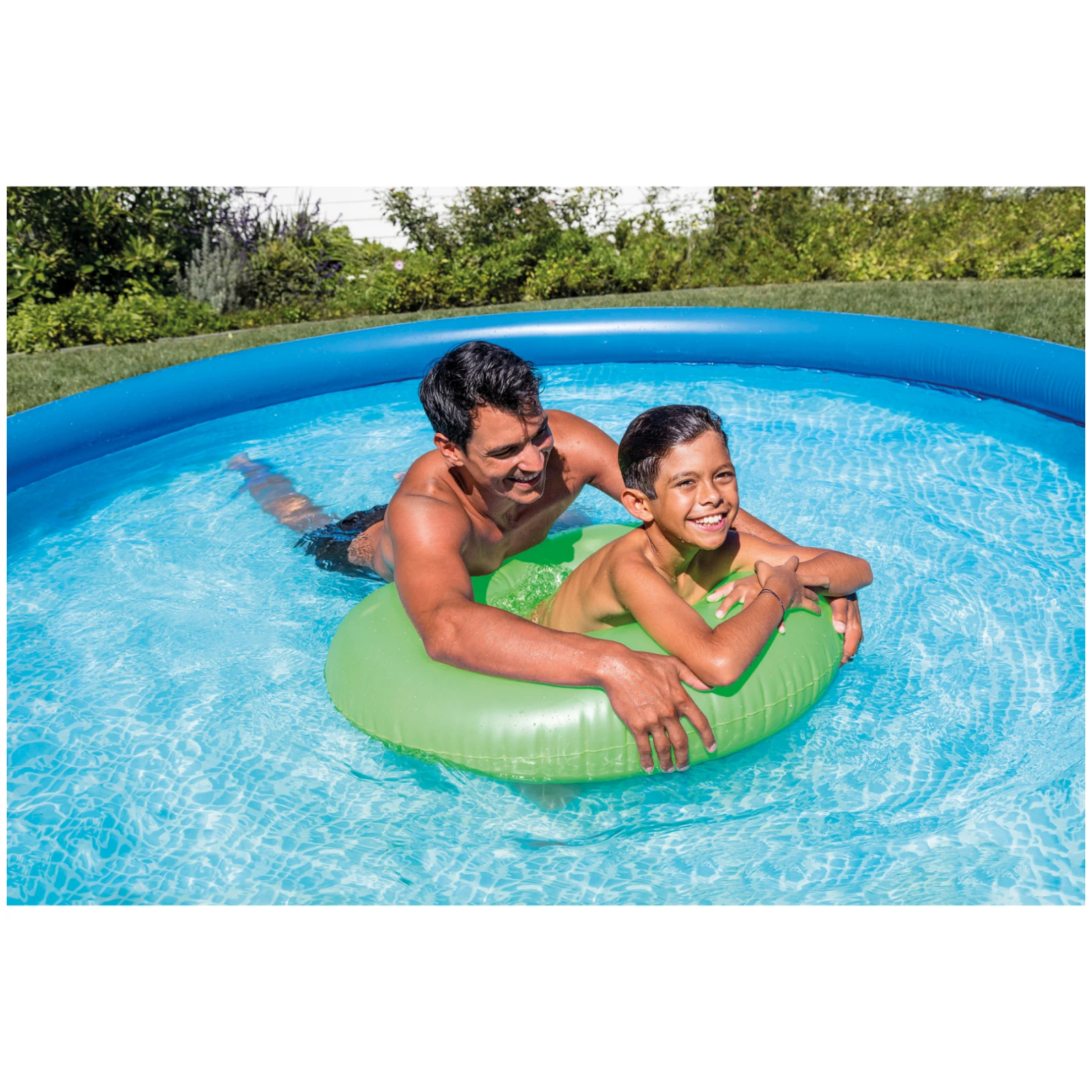 Vanjski dio bazena izrađen je isključivo od izdržljivog pvc-a s tehnologijom super-tough™, koja povećava otpornost na oštećenja i uobičajeno trošenje. Okrugli oblik pruža dovoljno prostora za obiteljsko kupanje, s kapacitetom bazena od približno 1.942 l vode, što je idealno za dječju igru i ugodno osvježenje odraslih.