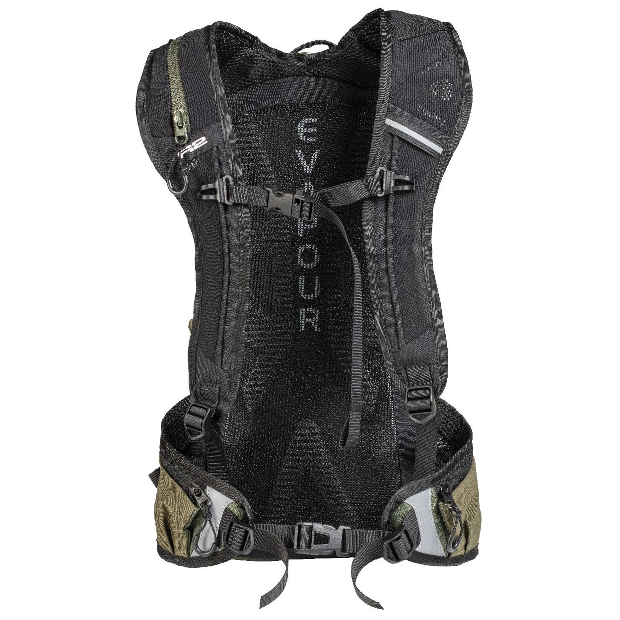 Glavni pretinac s patentnim zatvaračem ima unutra džep za hidro-vrećicu. Osim toga, tu je i organizator alata i niz džepova s patentnim zatvaračem i elastičnih džepova koji mogu primiti sve što vam je potrebno. Naravno, tu je i držač za biciklističku kacigu i sklopiva integrirana kabanica.