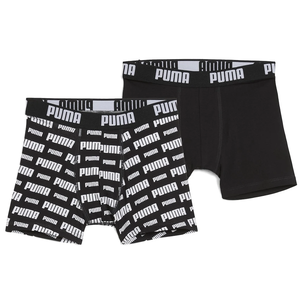 Set od dva komada dječjih bokserica <\/strong>Puma Everyday Logo Print Boxers 2P dizajniran je za maksimalnu udobnost i svestranost. Prikladne su za svakodnevnu uporabu u školi, slobodno vrijeme i sportske aktivnosti. Ukratko, idealan su izbor za sve koji traže pouzdano i udobno donje rublje.