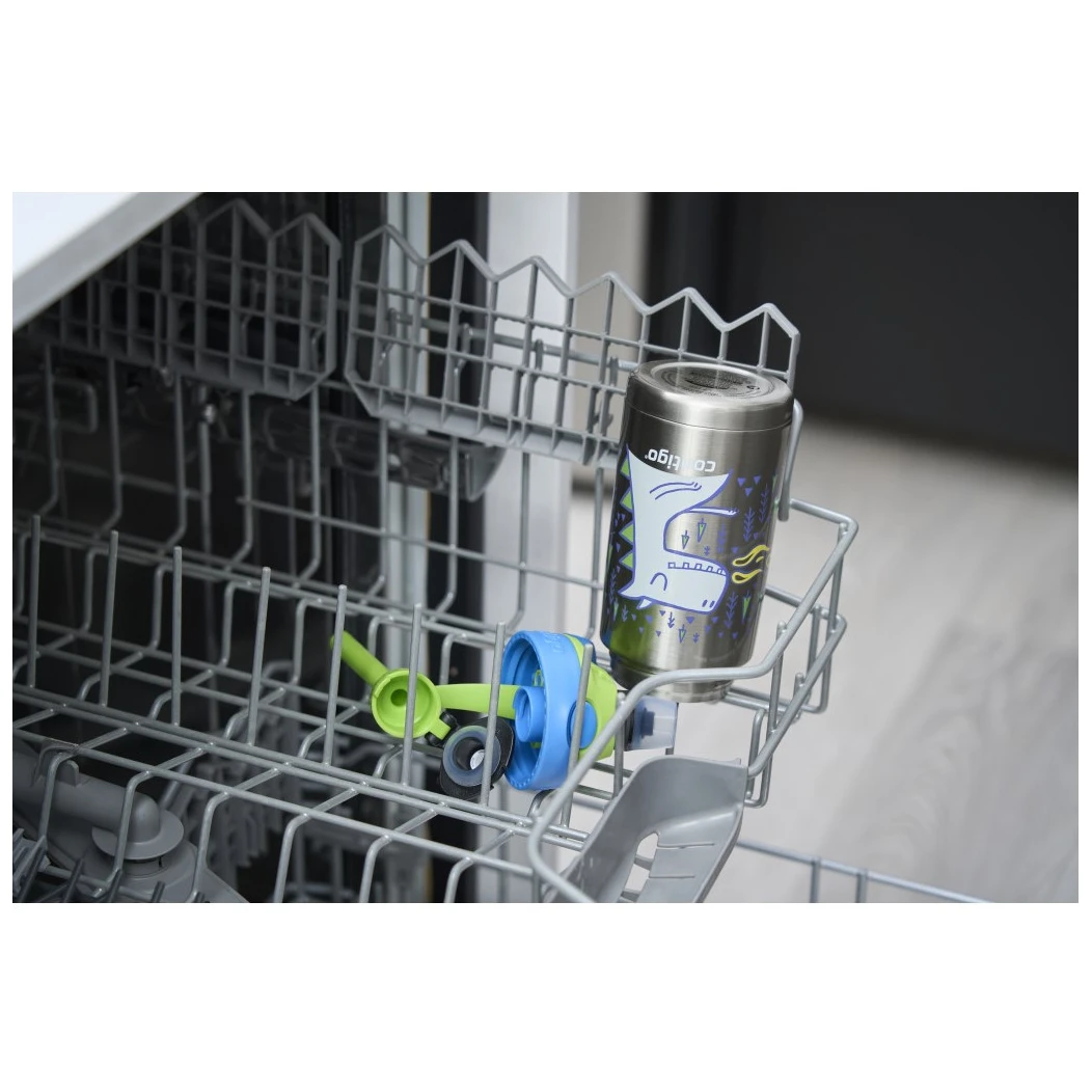 Termos boca se može jednostavno rastaviti za temeljito čišćenje. Poklopac i tijelo termos boce prikladni su za pranje u perilici posuđa na gornjoj rešetki. Stane u većinu držača za piće. Mekani remenčić za jednostavno nošenje u školi i na igralištu. Nakošena slamčica omogućuje pristup i posljednjoj kapi. Termos boca nije prikladna za vruće napitke zbog sigurnosti pri pijenju. U otvorenom položaju proizvod nije otporan na prolijevanje, stoga ga preporučujemo prenositi u uspravnom položaju.
