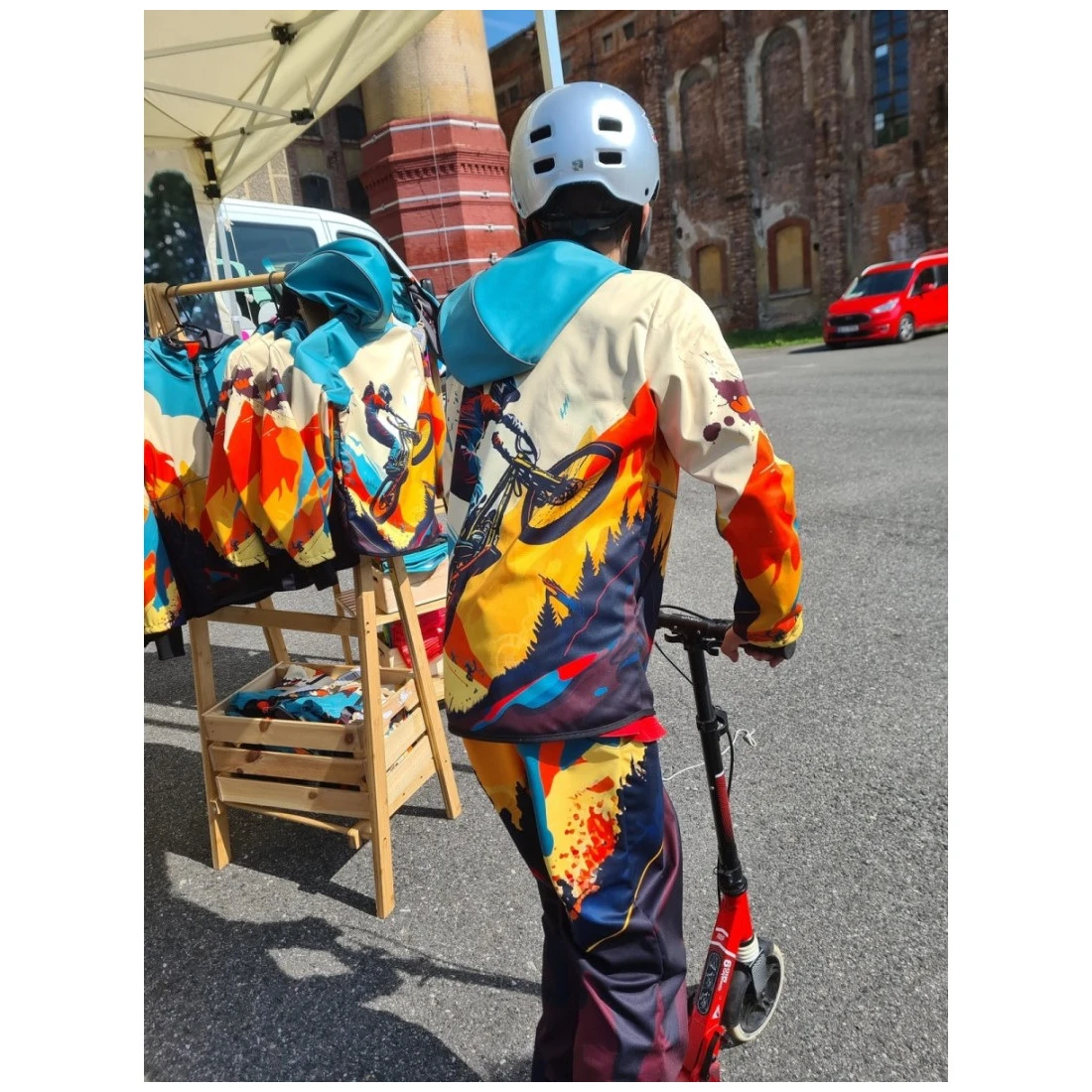 Uunikátní dizajni tiskani su sublimacijskim tiskom na softshell, pri čemu dolazi do visokotlačnog stiskanja materijala. Softshell tada može privremeno djelovati tanje. I unatoč tome, materijal je i dalje prikladan za uvjete hladnog vremena. Debljina materijala vratit će se u prvobitno stanje nakon prvog pranja.