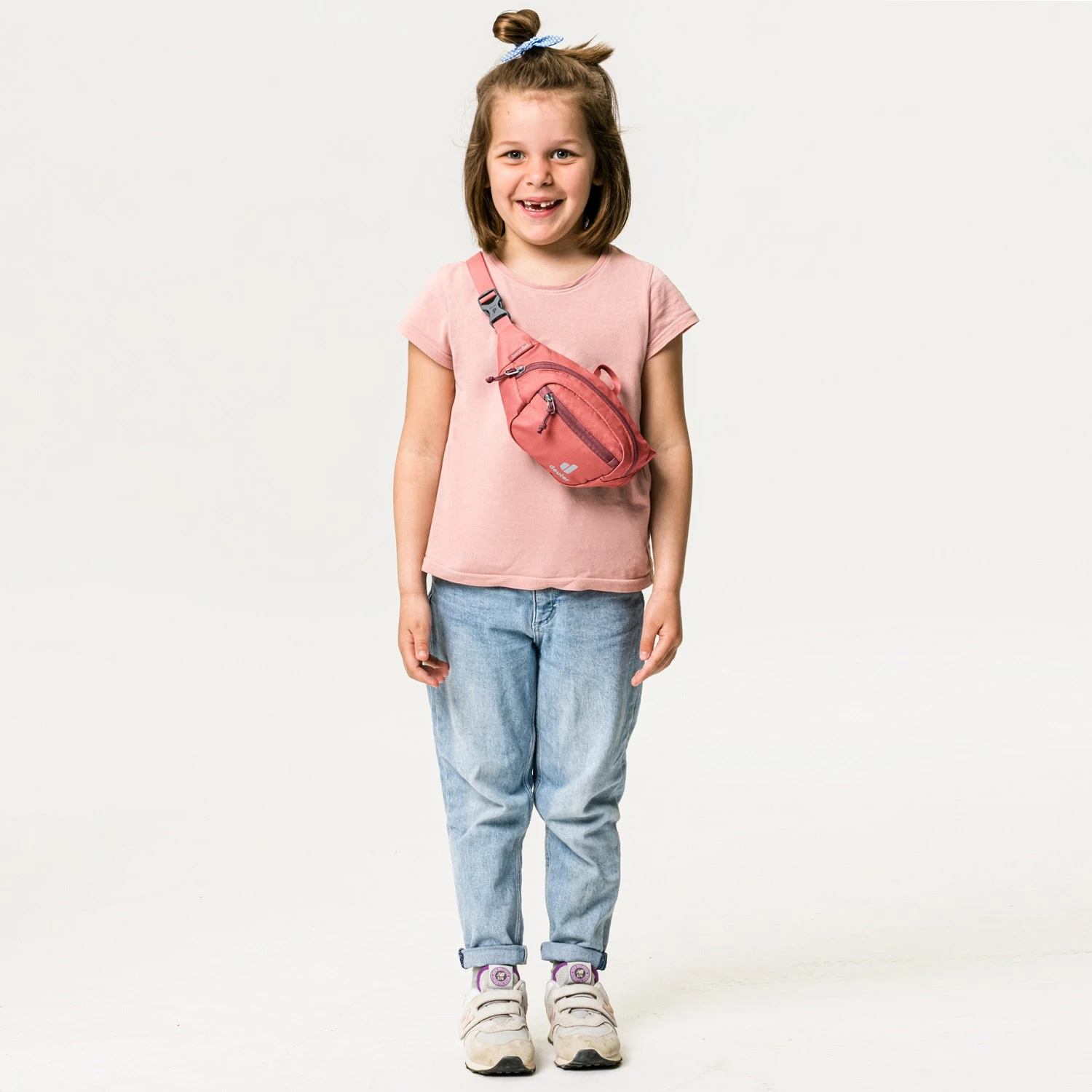 Junior Belt za djecu iz Deutera ima prednji džep na patentni zatvarač s kopčom za ključeve i glavni pretinac na patentni zatvarač s mrežastim džepom koji nudi mnoštvo opcija za sigurno spremanje dječjih sitnica. Tkanina je bez PFC- a i općenito torba oko struka ima certifikat Green Button - stoga je izrađena od 100% recikliranih materijala.