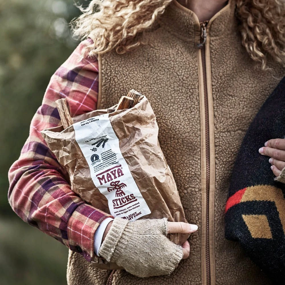 Zapalite i održavajte vatru pomoću MayaSticks. Pakirano u zapaljivu papirnatu vrećicu i napravljeno od borovih panjeva iz Hondurasa. Cjepanice se lako zapale, čak i kada su mokre proizvode intenzivnu toplinsku snagu. I super miriše!