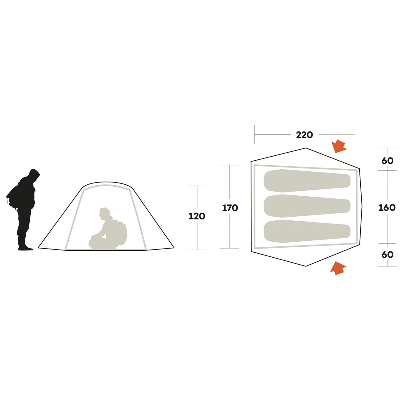 Označava za koliko je osoba šator/viseća mreža namijenjena. Za šatore, prtljaga i ostala oprema nisu uzeta u obzir. Stoga pripazite na broj predvorja ili apsida ili odaberite nešto prostraniji šator za prtljažni prostor. Viseće mreže proizvode se u veličinama za jednu osobu (1 osoba) ili dvostruku (2 osobe). Razlike između njih su u nosivosti i dimenzijama.