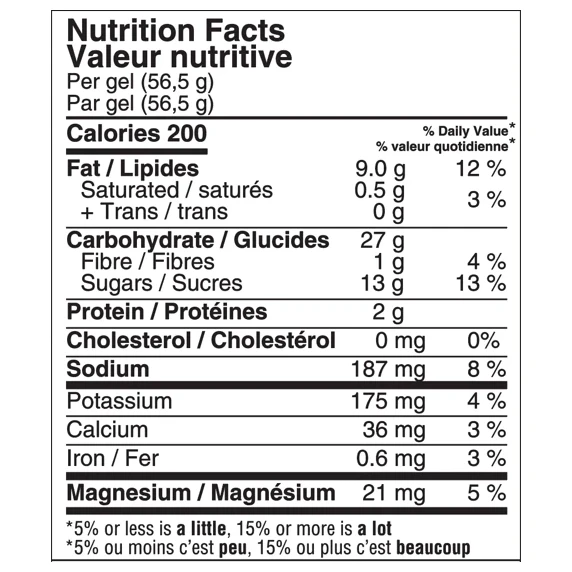 Naak Ultra Energy™ Gel s okusom slanog javora optimiziran je za zahtjevne izvedbe izdržljivosti i dugotrajno fizičko opterećenje. Zahvaljujući 200 kalorija u jednoj dozi pruža brz i trajan izvor energije. Sadrži 27 g ugljikohidrata u omjeru 1:1 (brzi vs. kompleksni) i 3:1 (glukoza:fruktoza) za učinkovitu apsorpciju i iskorištavanje šećera. 2 g biljnog proteina obogaćenog s 235 mg BCAA pomažu regeneraciji mišića i podršci opskrbe glikogenom. Gel dodatno osigurava 420 mg elektrolita za obnovu minerala izgubljenih znojem. Zahvaljujući polutekućoj konzistenciji lako se apsorbira, a nisko glikemijsko opterećenje pomaže boljoj toleranciji tijekom dugotrajnog napora.