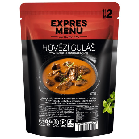 Tradicionalno češko jelo s komadićima vrhunske govedine pirjane na bazi od luka sa slatkom paprikom s Express jelovnika. Umak je savršeno začinjen češnjakom, mažuranom i paprom. Goveđi gulaš ne sadrži gluten, konzervanse niti alergene.