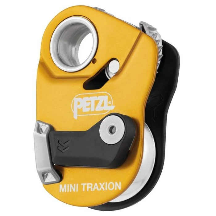 Petzl koloturnik Mini Traxion dizajniran je za montažu dizalice i operacije spašavanja. Jedna strana se može otvoriti i omogućuje ugradnju užeta čak i ako je obješeno na sidrišnu točku. Disk velikog promjera postavljen je na kuglične ležajeve i pruža izvrsnu učinkovitost (93%). Bregasti zasun može se zaključati u otvorenom položaju, tako da se uređaj može koristiti i kao obična remenica.