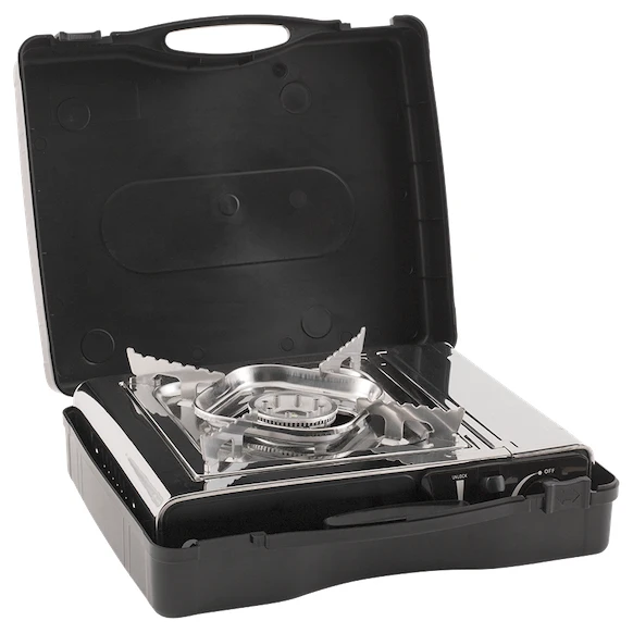 Plamenik raspolaže snagom do 2000 W, okretnim cinkovim upravljačkim gumbom za glatku regulaciju i piezo paljenjem. Unutra je ugrađen prostor za butan uložak MSF-1A. Sigurnosni sustav Gasguard sprječava neželjeno curenje plina u slučaju da plamen ugasi. Ploču lako prenosite zahvaljujući robusnom putnom kućištu.