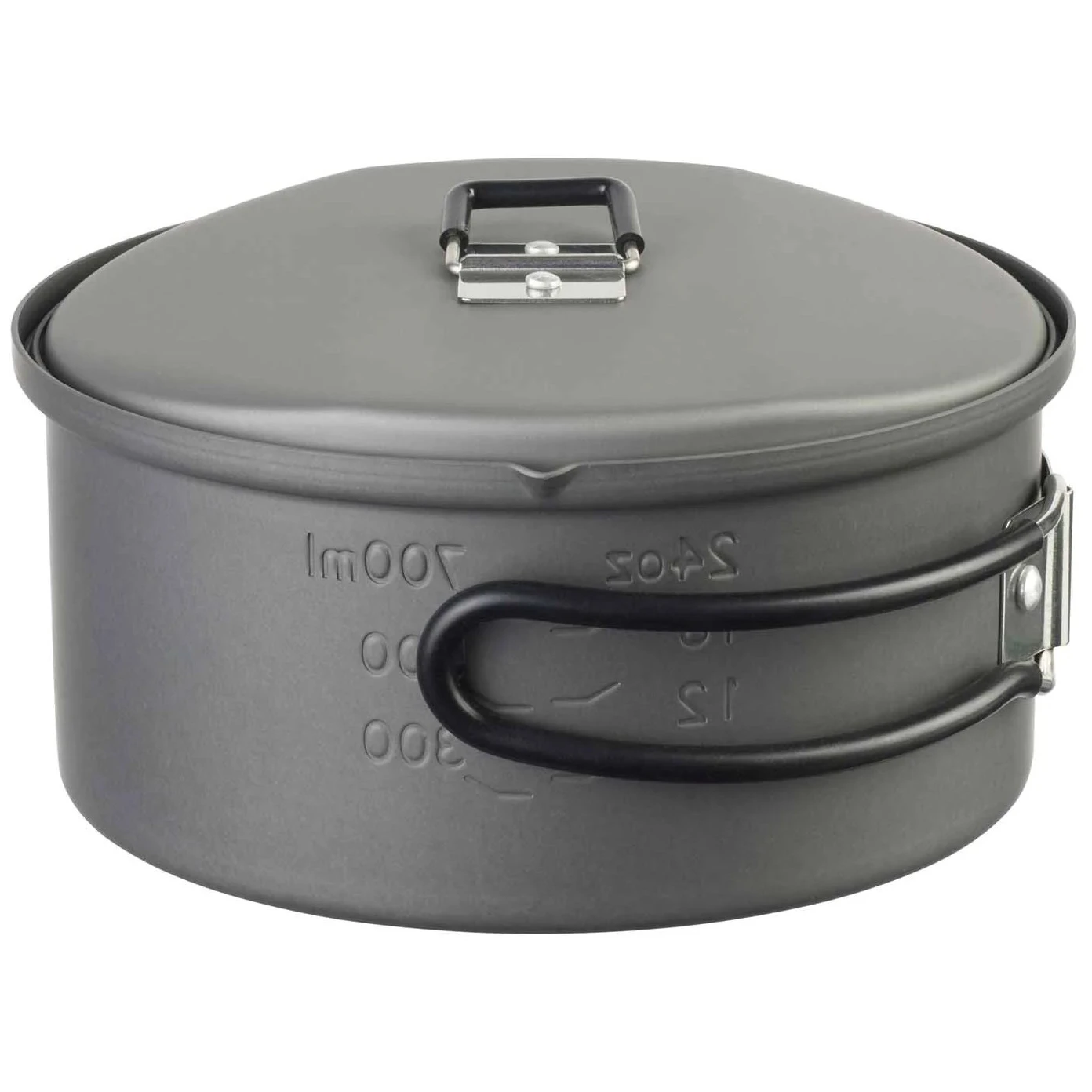 Aluminijska posuda od 1,1L je toplinski otporna, ima sklopivu ručku od nehrđajućeg čelika sa silikonskim premazom koji osigurava udobno držanje.