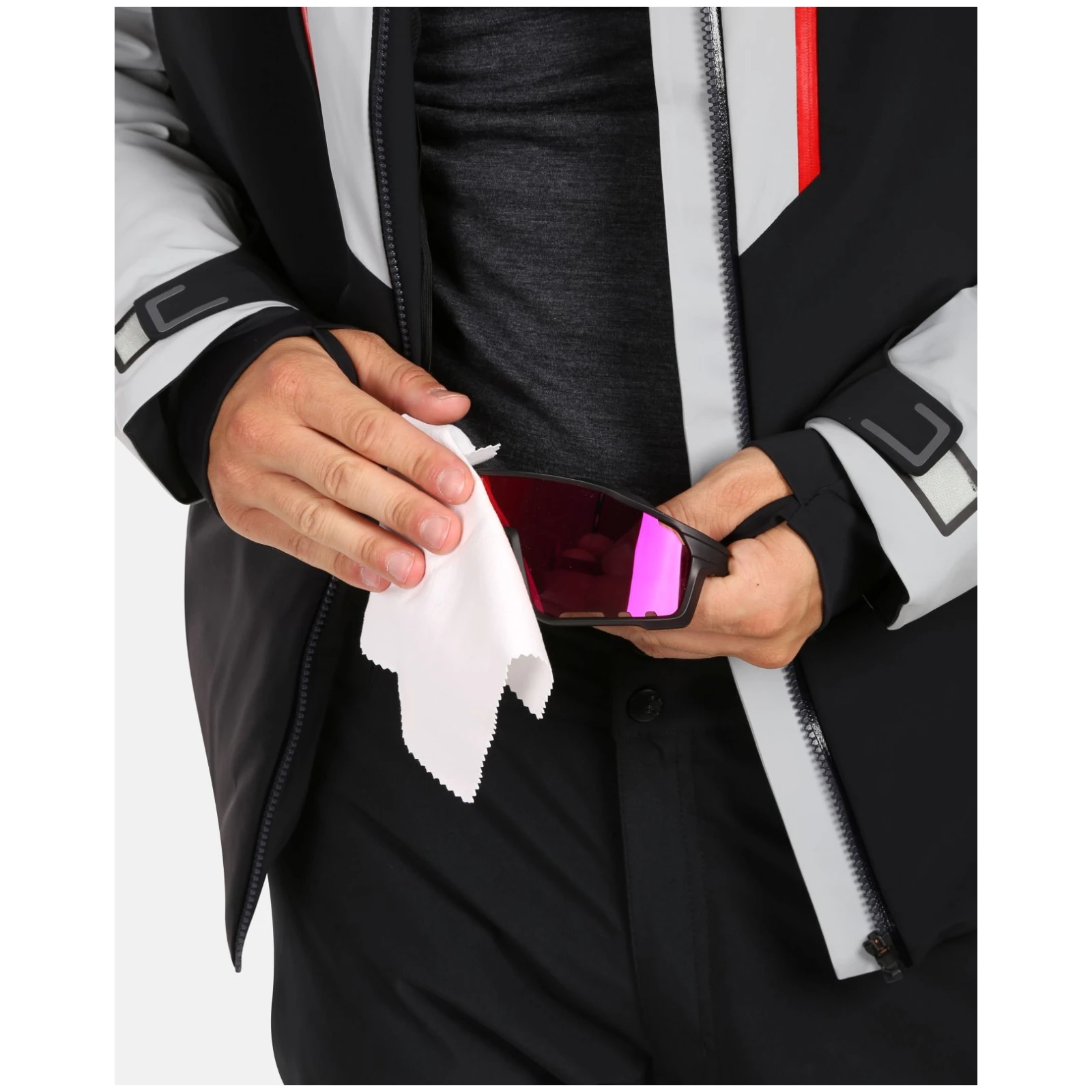 Jakna ima dvostrani glavni patentni zatvarač koji omogućuje jednostavan pristup unutarnjim slojevima i dva glavna džepa na patentni zatvarač. Zahvaljujući svojoj maloj težini i mogućnosti pakiranja u transportnu vrećicu, praktična je za putovanja.