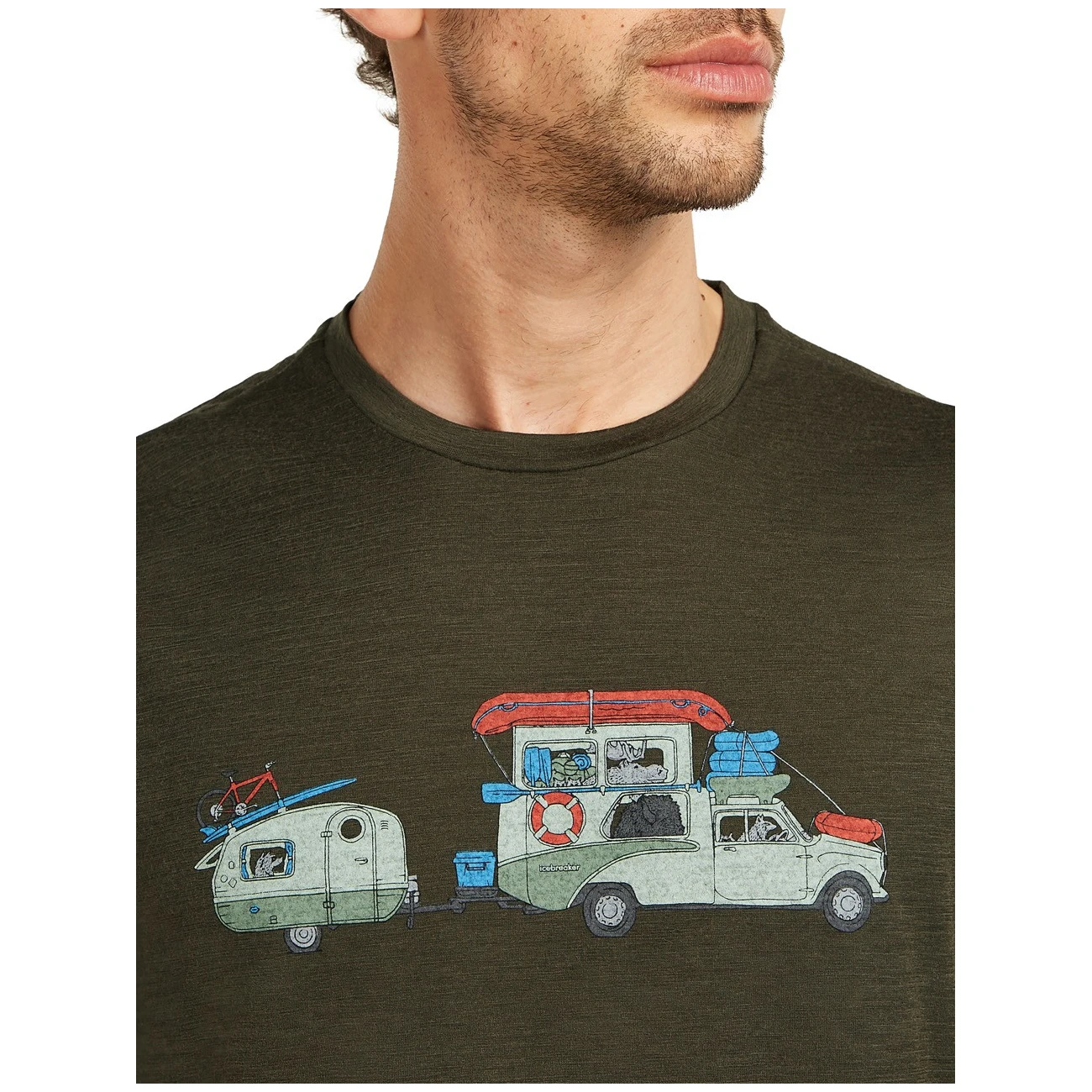 Majica je izrazito prozračna i pruža maksimalnu udobnost. Za udobnost prilikom nošenja ruksaka, majica ima pomaknute šavove na ramenima koji smanjuju trenje i sprječavaju iritaciju kože. Originalna grafika s medvjedom na stazi daje majici jedinstven i moderan izgled.