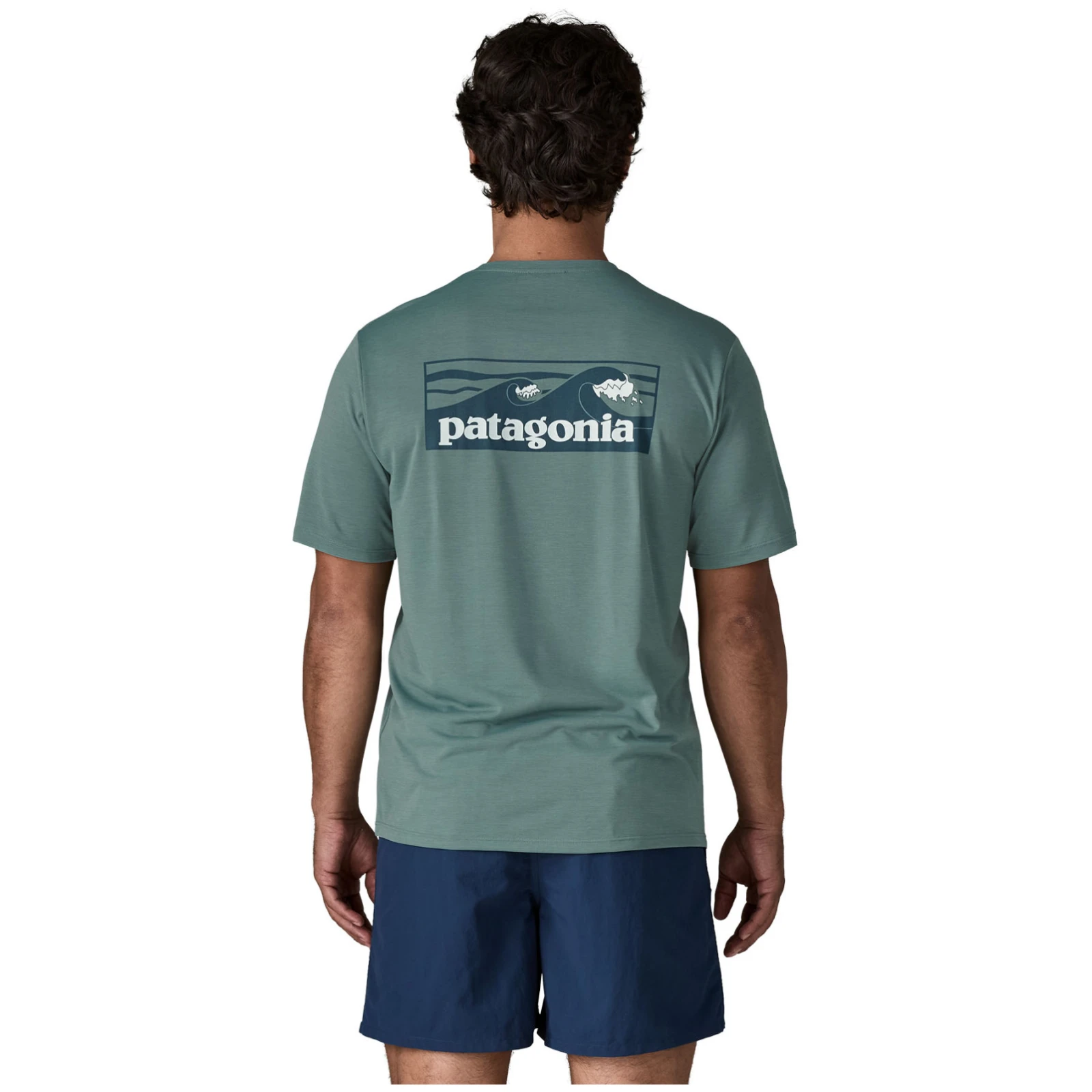 Muška majica Patagonia Capilene® Cool Daily Shirt Boardshort Logo lagana je tehnička majica od recikliranog poliestera za sport i svakodnevno nošenje.