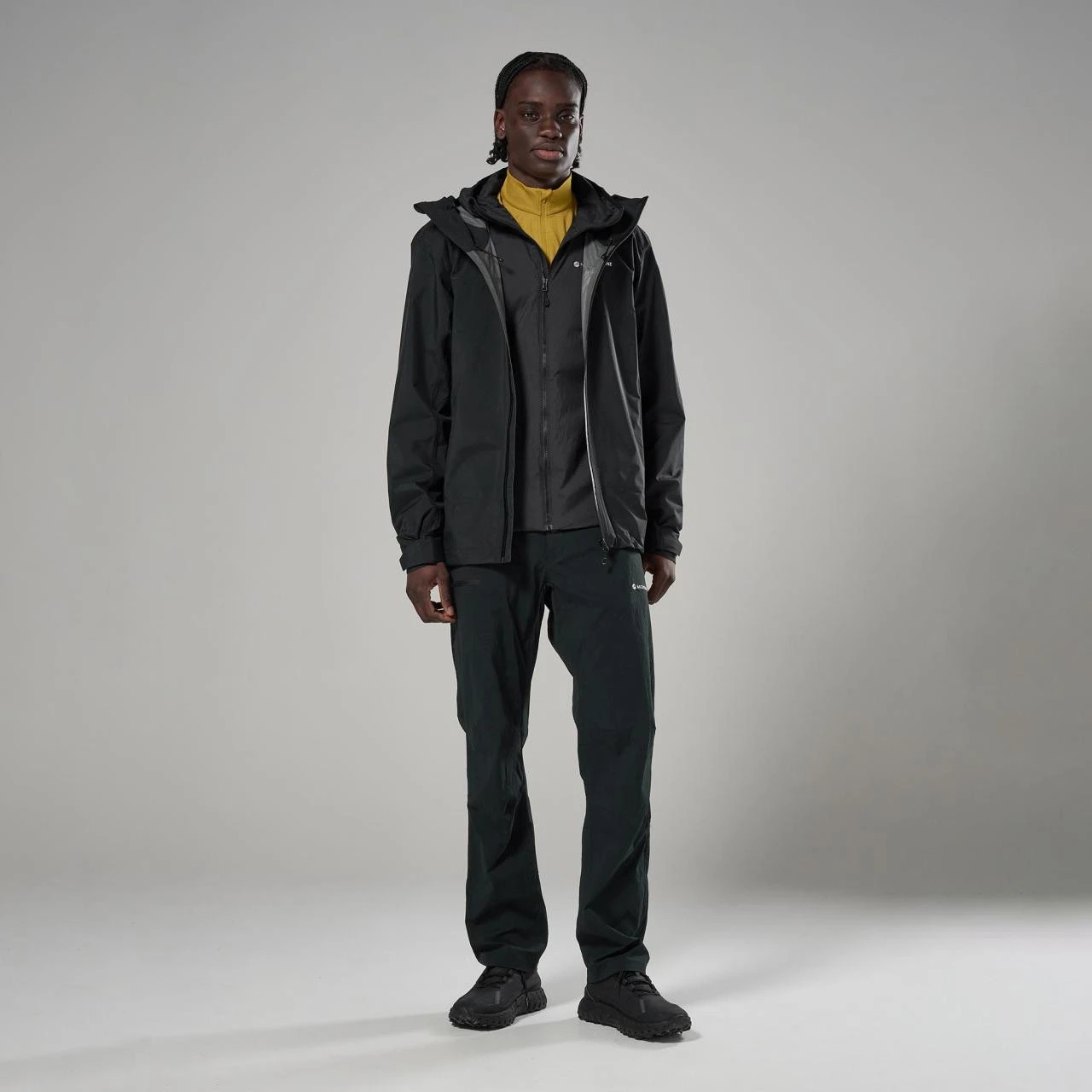 Osnovu čini materijal Pertex® Shield 2,5L, koji kombinira recikliranu 40D ripstop tkaninu s vodootpornom i vjetrootpornom membranom. Unutarnja podstava od 20D trikoa ugodna je na dodir i povećava udobnost pri nošenju. Konstrukcija je dizajnirana s naglaskom na nisku težinu i funkcionalnost, pri čemu ograničen broj šavova pomaže povećati izdržljivost i istovremeno podržava prozračnost pri aktivnom kretanju.