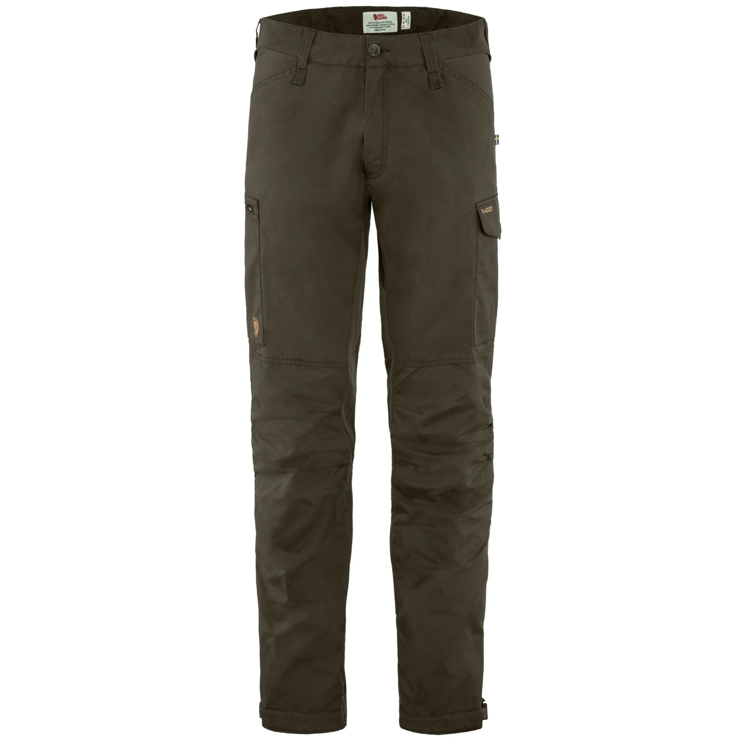 Hlače Kaipak iz Fjällrävena dizajnirane su za jednako dobre performanse na stazi iu gradu. Zglobni kroj zajedno s rastezljivim pločama na stražnjem sjedalu, u međunožju, na stražnjoj strani koljena pružaju veliku slobodu kretanja. Glavna tkanina sastoji se od izdržljivog materijala G-1000 Ecokoji može izdržati vjetar i kratke pljuskove i može se tretirati posebnim Grenlandski vosak. To će osigurati dodatnu zaštitu i povećati izdržljivost materijala. Ostale značajke uključuju dva džepa za ruke, dva džepa na bedrima, omče za remen i krajeve nogu s podesivim porubom i kukicama za cipele.