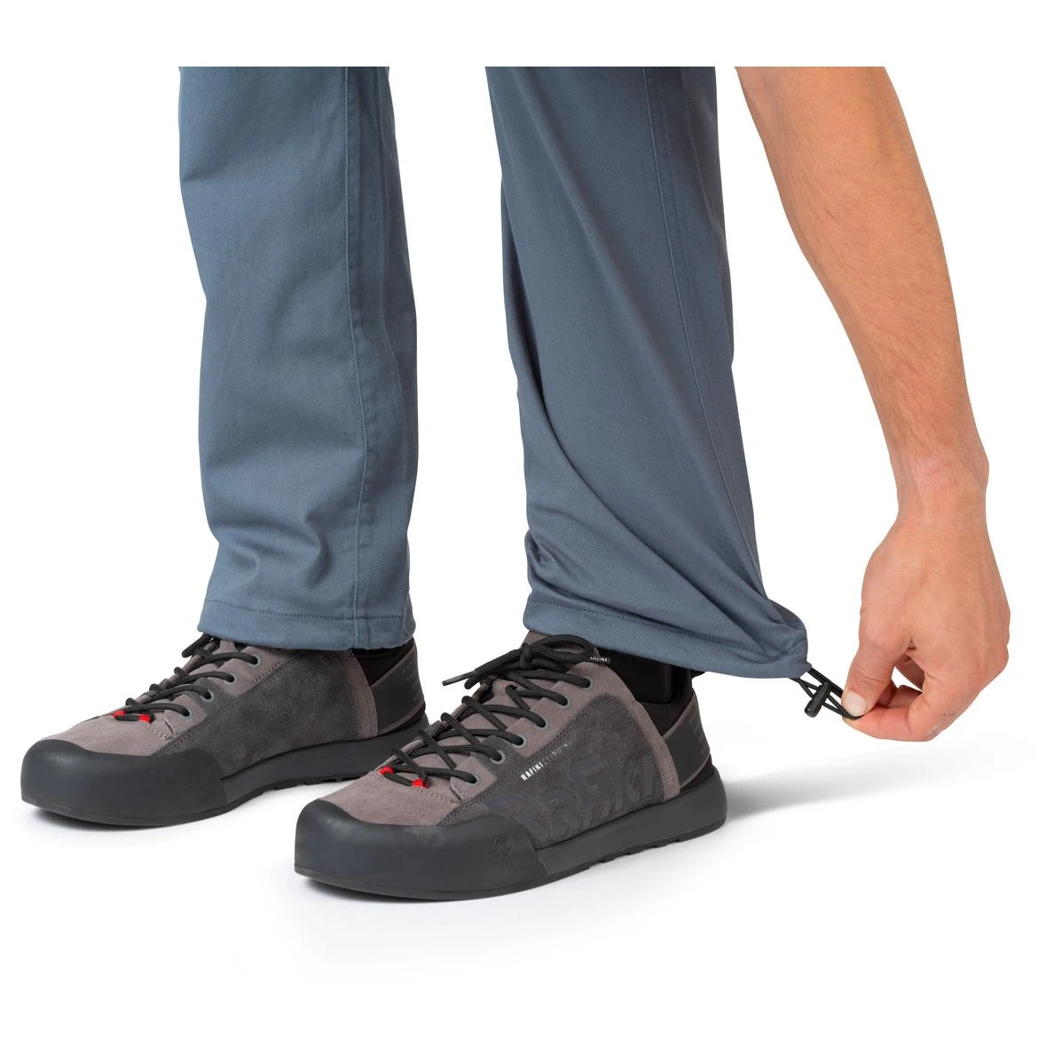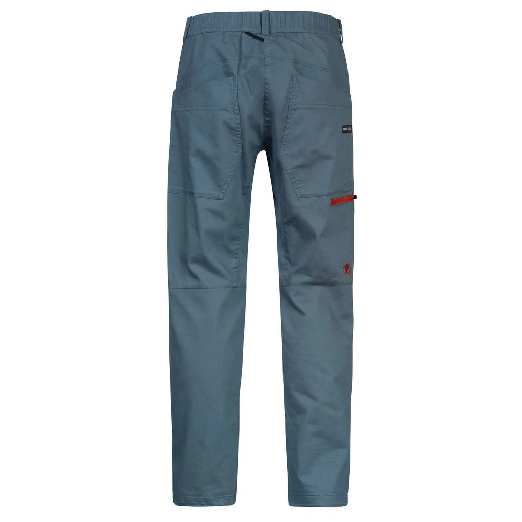 Muške pamučne penjačke hlače Rodellar marke Rafiki prikladne su za penjanje, ali i za aktivnosti u slobodno vrijeme. Snažna strana je ugodan, ali istovremeno i izdržljiv materijal koji može podnijeti i grublje postupanje. U elastičnom struku je vezica za stezanje. Hlače imaju oblikovana koljena, stezanje oko gležnjeva i ušiven klin za maksimalnu slobodu kretanja. Podrazumijevaju se omče za remen, dva glavna džepa, dva nisko postavljena stražnja džepa, bočni džep s patentnim zatvaračem i džep za četkicu.