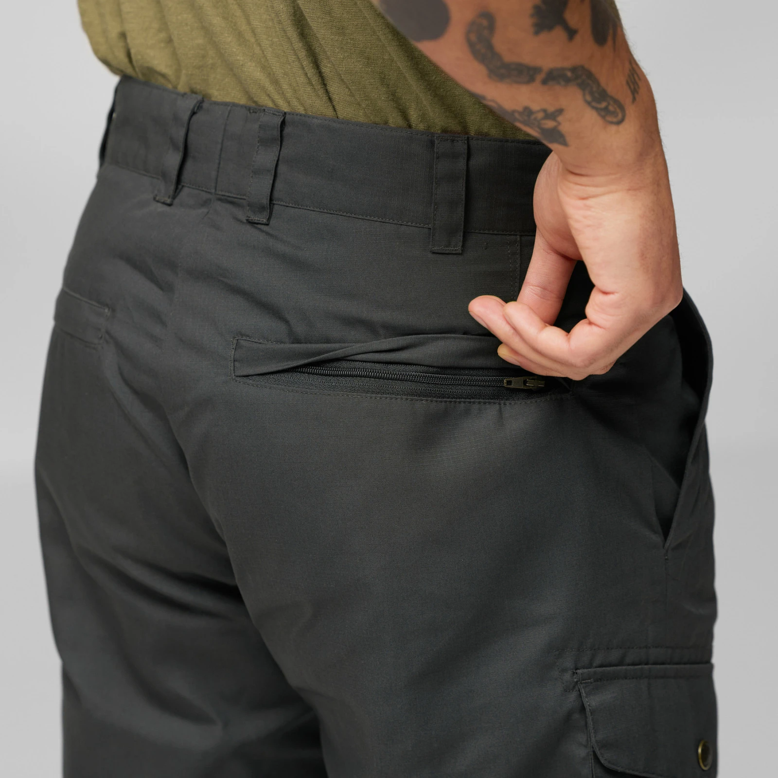 Lagane muške putne kratke hlače Ruaha Shorts M iz Fjällrävena izrađene su od izdržljivog materijala G- 1000 Lite. Zgodan za avanture putovanja i duga putovanja kada vam je potrebna izdržljiva odjeća koja može izdržati jače habanje. Prostrani džepovi na hlačama s preklopima, ergonomski smješteni sa strane hlača i s dijagonalnim otvorima za bolji pristup, detalji su koji će vas sigurno oduševiti. Kratke hlače također imaju dva džepa za ruke i stražnje džepove s patentnim zatvaračemkoji su skriveni ispod preklopa.
