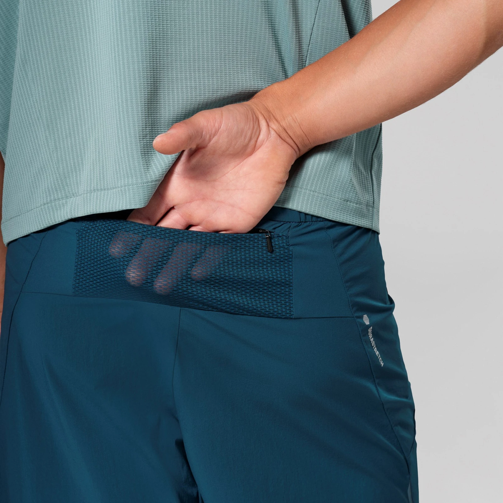 Kratke hlače imaju dva otvorena džepa za ruke i stražnji mrežasti džep s patentnim zatvaračem za sigurno spremanje sitnica. Duljina bočnog šava je 46 cm, a težina približno 180 g, što ih čini najlakšim modelom kratkih hlača za brzo planinarenje u ponudi.
