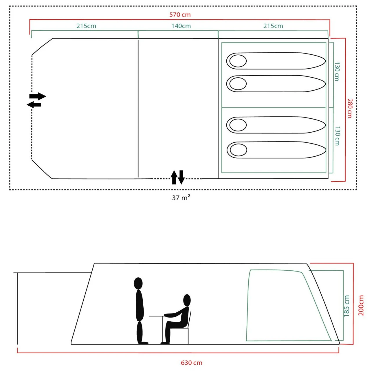 - 280 x 570 x 200 cm