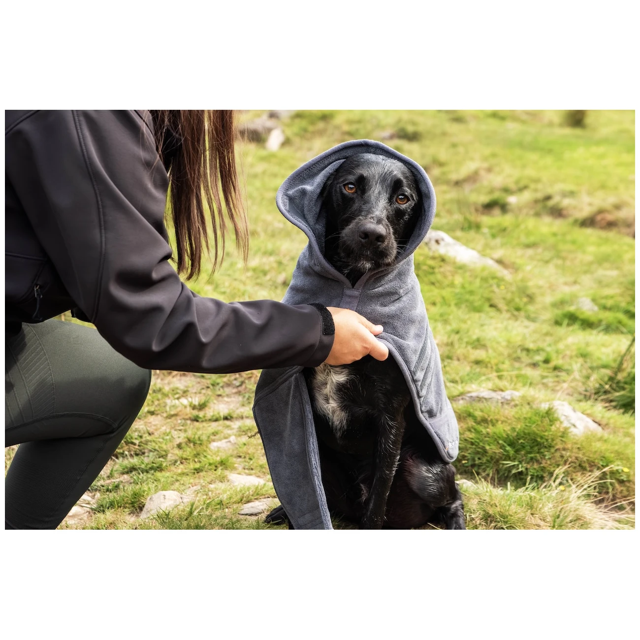 Materijal koji se brzo suši od mikrovlakana upija vlagu, uklanja nečistoće poput blata ili pijeska i pouzdano suši psa. Zahvaljujući ovom materijalu, nema opasnosti od pregrijavanja, a istovremeno se nečistoće neće širiti van.