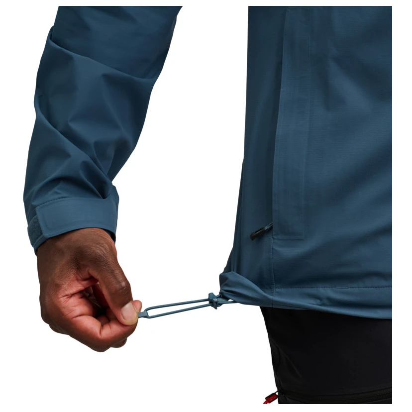 Jakna koristi 3-slojnu tehnologiju BD.dry™, koja osigurava vodootpornost, prozračnost i zaštitu od vjetra čak i u zaista nepovoljnim uvjetima. DWR površinska obrada bez dodanih PFAS pomaže odbijati vodu i istovremeno je štedljivija prema okolišu. Potpuno zalijepljeni šavovi, vodootporni patentni zatvarač YKK Conceal® te podesivi rub i manžete sprječavaju prodiranje vlage.