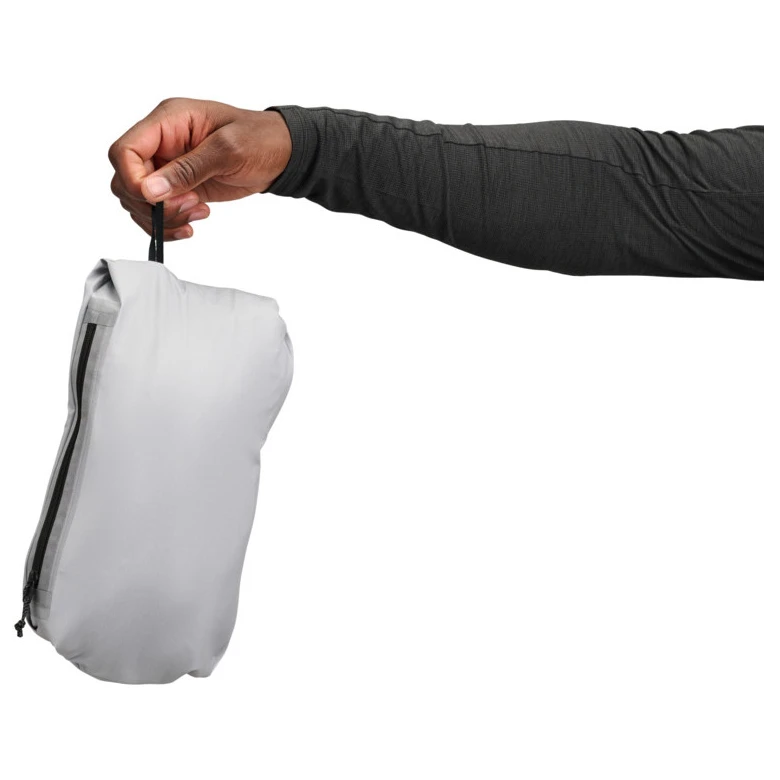Praktični detalji poput ventilacijskih patentnih zatvarača u području pazuha omogućuju regulaciju temperature pri većoj aktivnosti, dok kompatibilna kapuljača s kacigom za penjanje povećava sigurnost i udobnost. Jakna se dodatno može složiti u vlastiti džep, tako da je možete uvijek imati pri ruci. Težina od samo 352 g doprinosi udobnom nošenju bez nepotrebnog opterećenja.