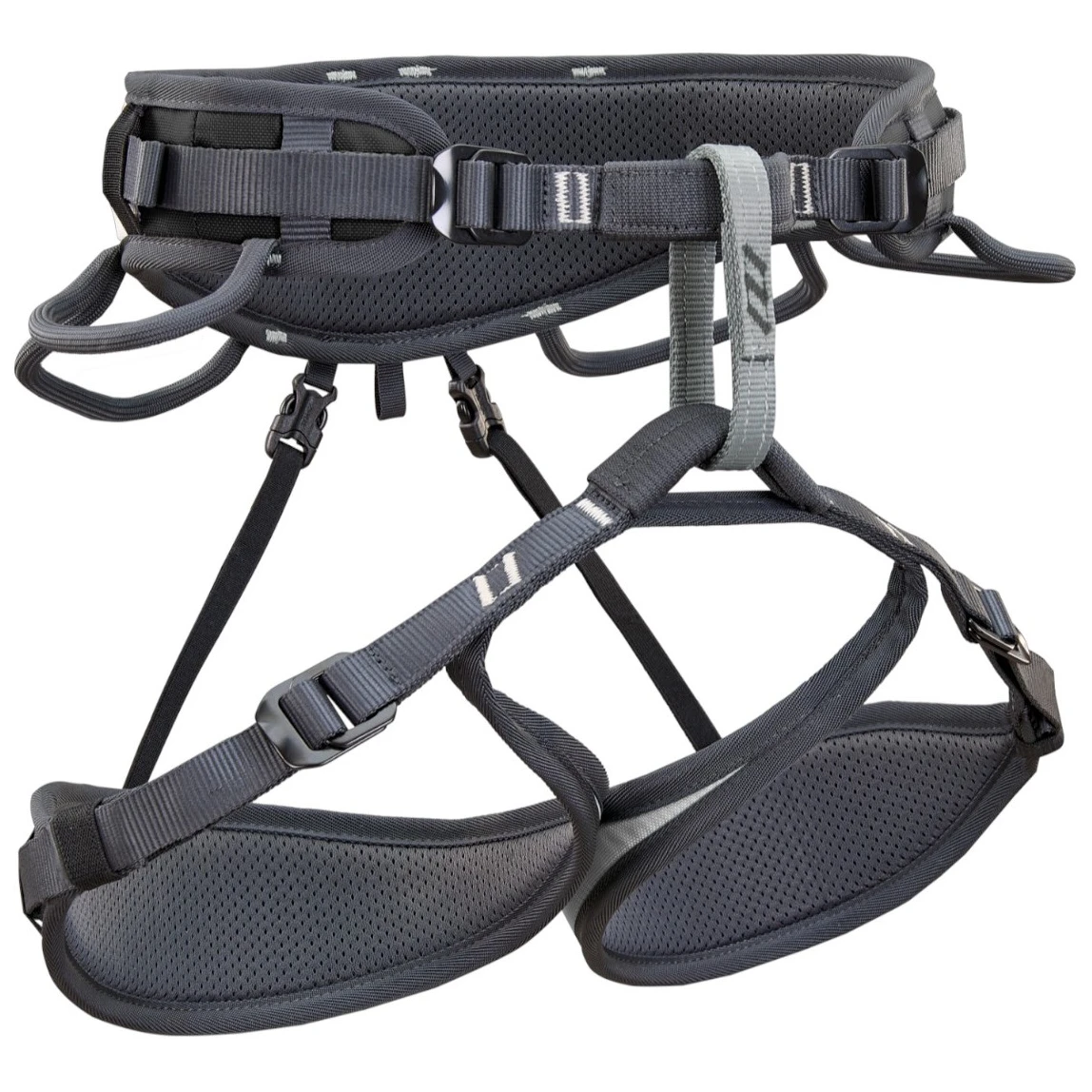 Četiri podesive kopče omogućuju precizno prilagođavanje struka i nogavica prema figuri i slojevima odjeće. Ergonomska potpora za struk i nogavice osigurava ravnomjernu raspodjelu opterećenja i udobnost pri vješanju, bez ograničavanja pokreta.