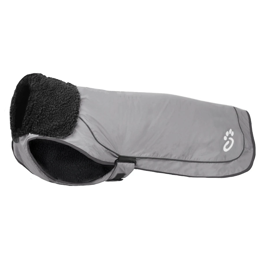 Vanjski najlonski materijal je izdržljiv i reflektirajući po cijeloj površini, tako da je pas stvarno vrlo dobro vidljiv i u uvjetima slabe vidljivosti. Iznutra je topla podstava od flisa ugodna na dodir. Zahvaljujući udobnom kroju, odjeća dobro pokriva prsa i štiti vrat. Kopčanje na čičak nadopunjeno je remenčićima oko stražnjih nogu, koji sprječavaju podizanje odjeće na vjetru ili tijekom kretanja. Iza ovratnika nalazi se otvor na patentni zatvarač za pričvršćivanje povodca za oprsnice.