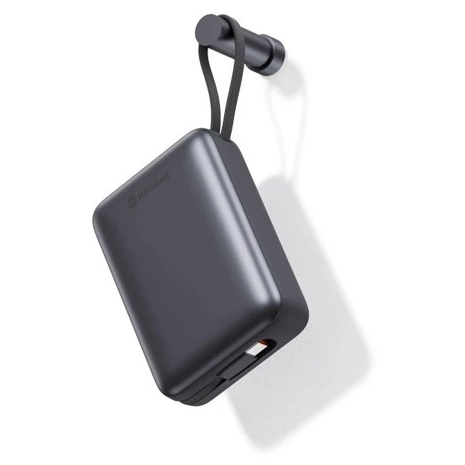 Powerbanka POWER BANK 20 000 mAh marke Swissten idealan je izbor za svakodnevnu upotrebu i dulja putovanja. Nudi maksimalnu udobnost i pouzdanost zahvaljujući integriranim kabelima USB-C i Lightning. Powerbank ima izlaznu snagu do 22,5 W preko USB-C priključka i integriranog kabela, što omogućuje učinkovito punjenje pametnih telefona, tableta i drugih uređaja. USB-A priključak snage 22,5 W i Lightning kabel snage 12 W osiguravaju kompatibilnost sa širokim rasponom uređaja - uključujući iPhone uređaje i uređaje s Androidom.