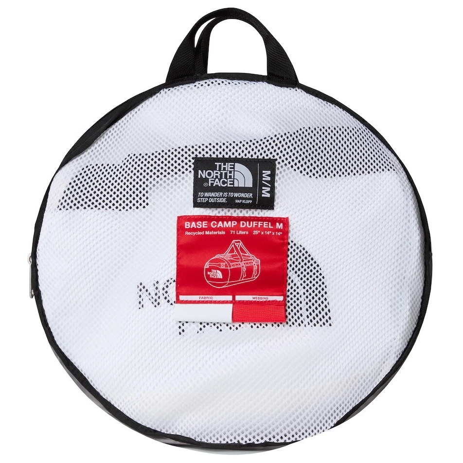 The North Face Baza Camp Duffel - M je vrlo izdržljiva putna torba obujma 71 litre. Model se nadovezuje na uspješne Dufflesice iz prethodnih godina, no u usporedbi s njima, kvaliteta materijala i funkcionalnost su porasli. Glavni pretinac je dostupan kroz poklopac s izdržljivim patentnim zatvaračem, unutra ćete pronaći unutarnji mrežasti džep s rokovnikom. Torba je opremljena vodootpornim džepom u koji možete pohraniti i mokru odjeću ili obuću, četiri kompresijske trake, ručkama za nošenje u rukama i ergonomski oblikovanim naramenicama za udoban transport na leđima.