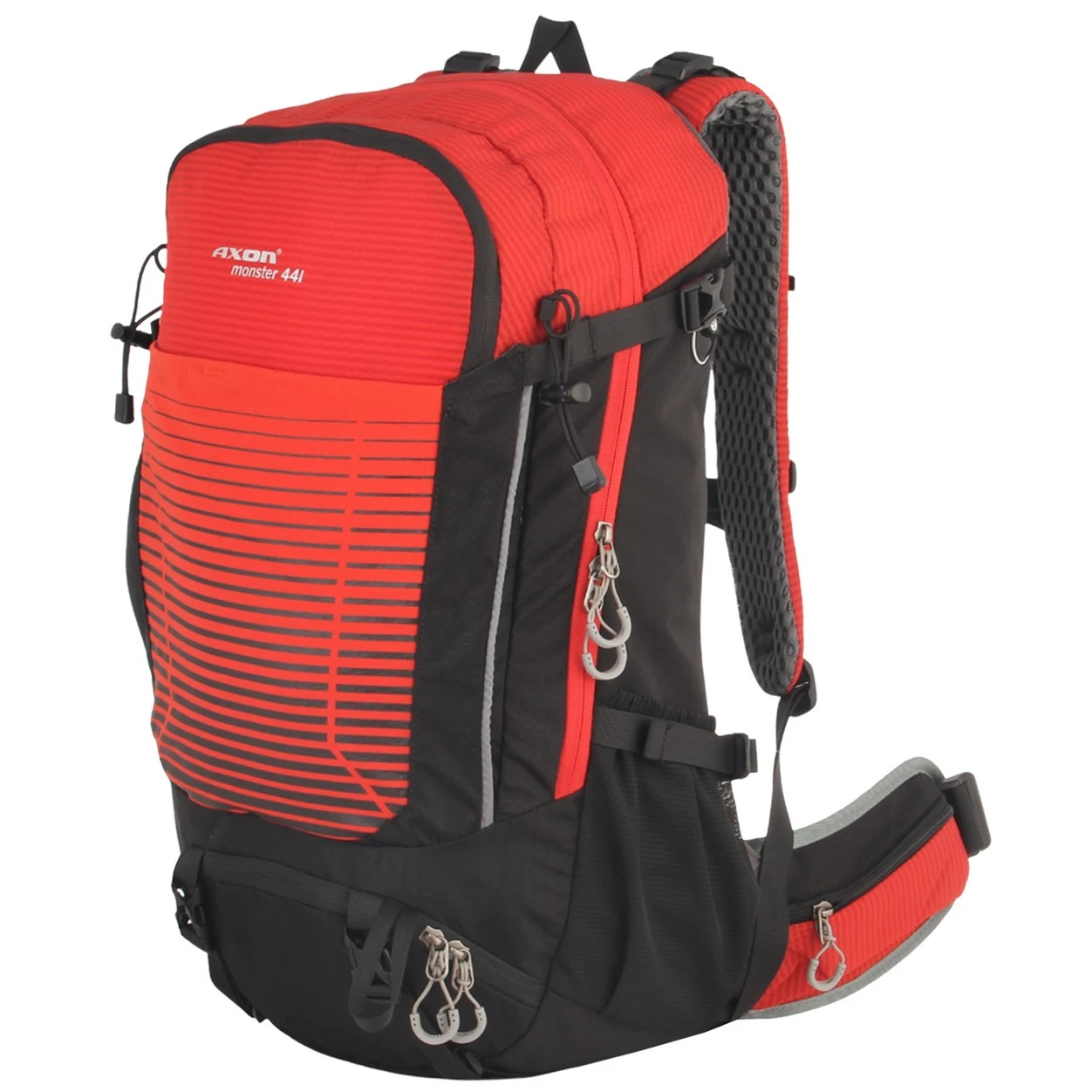 Ruksak Axon Monster je univerzalno upotrebljiv ruksak za jednodnevne ili višednevne zahtjevnije turističke izlete. Ima odvojiva podstavljena leđa Airconntact s podstavljenim pojasom za bokove s džepovima na patentni zatvarač.