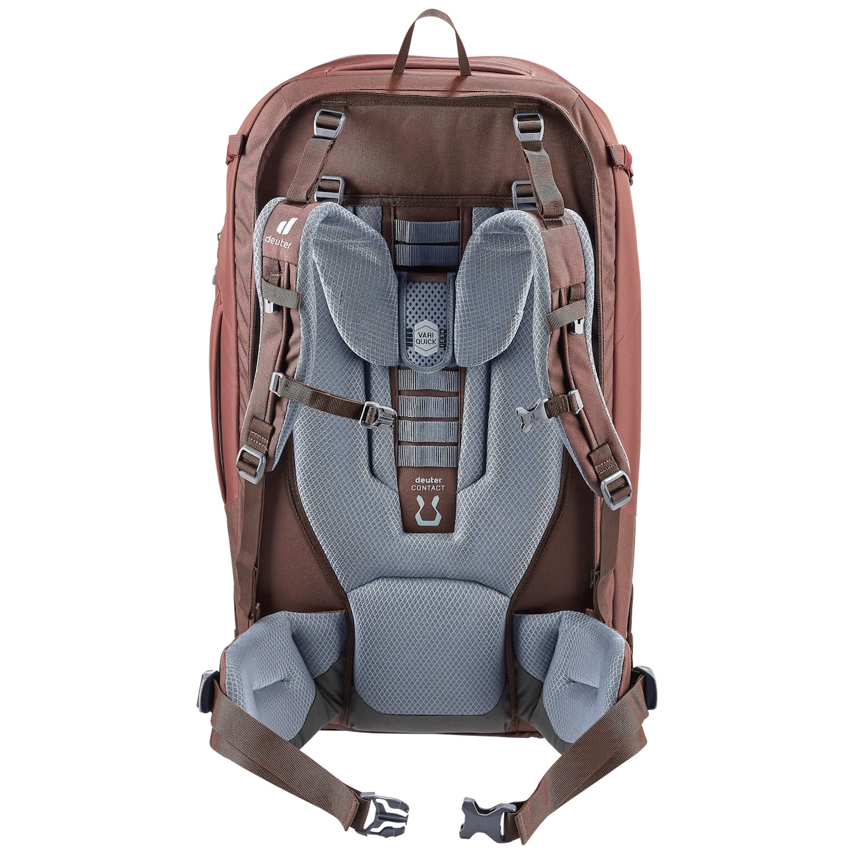 Leđni sustav sustava Contact je lagan, dobro podstavljen, savršeno ventiliran i savršeno raspoređuje težinu. S ovim sustavom možete prilagoditi duljinu leđa točno svom tipu tijela. Osim visokokvalitetnog leđnog sustava, ruksak ima anatomski oblikovane naramenice, dvosmjernu naramenicu za prsa i podesivi, dobro podstavljeni pojas na bokovima. Okvir okruglog profila zadržava oblik ruksaka. Cijeli stražnji sustav može se brzo spremiti za lakši transport. U tom trenutku sigurno ćete cijeniti podstavljene ručke.