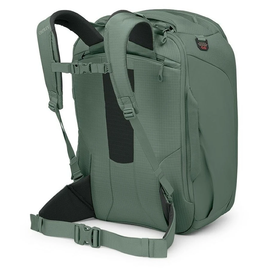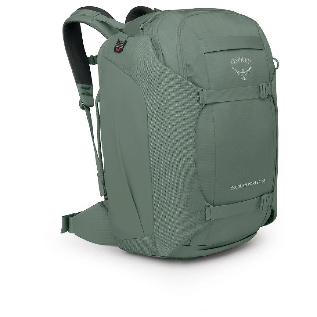 Putna torba Sojourn Porter 46 tvrtke Osprey savršen je izbor za ljubitelje putovanja koji traže pouzdanog suputnika za pohranu sve svoje opreme. Glavna atrakcija je sustav naslona podesiv po visini, koji torbu pretvara u udoban ruksak. Može se spremiti/sklopiti u poseban džep s patentnim zatvaračem u slučaju prijevoza ili prijave u zračnoj luci. Leđni sustav sastoji se od prozračnih i podstavljenih naramenica s prsnim pojasom i pojasom oko struka s ErgoPull kopčom. Za praktično rukovanje, primjerice tijekom prijave ili utovara u automobil, osigurano je nekoliko podstavljenih ručki koje su raspoređene po obodu torbe.
