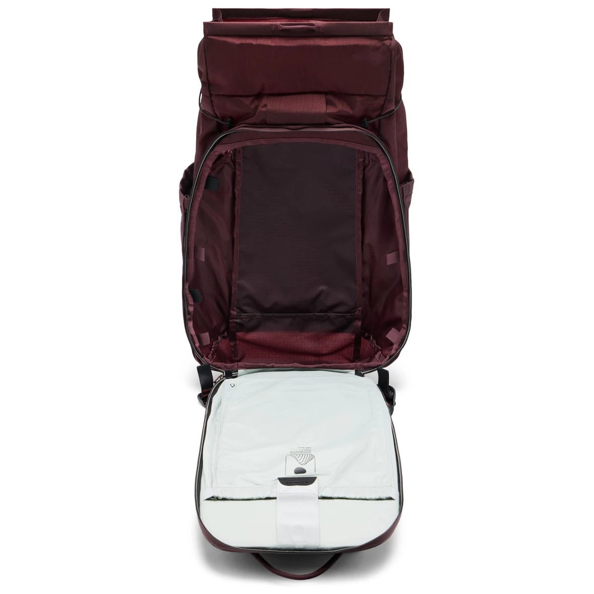 Unutarnji prostor je modularan i kompatibilan s organizatorima (npr. Camera Cubes) – može primiti prijenosno računalo do 16″ ili vrećicu za hidrataciju od 3 litre. Vanjski džepovi Flex Pockets™ i sustav remena Cord Hook™/Cord Rails™ omogućuju pričvršćivanje opreme na vanjsku stranu.