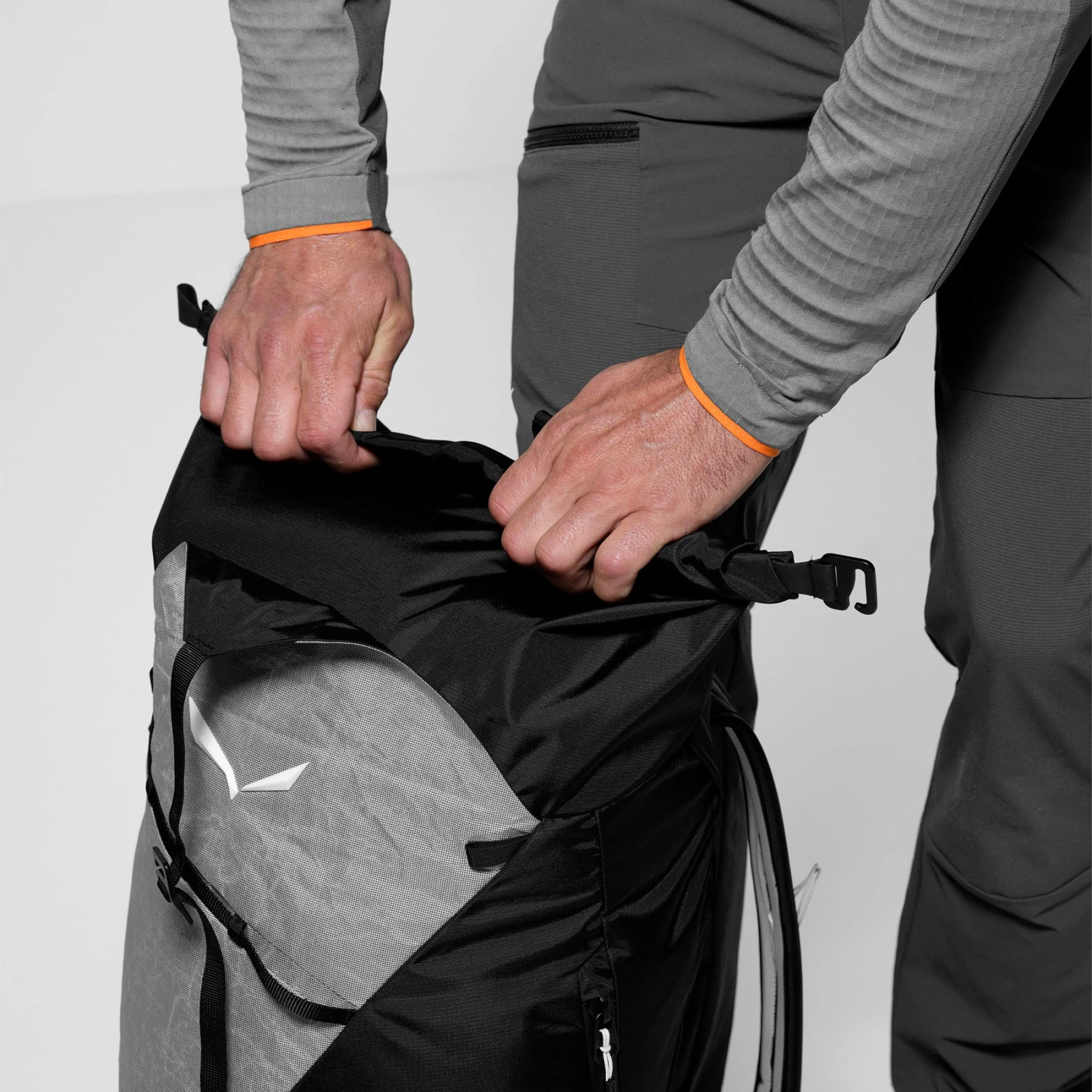 Sustav leđa Dry Back Contact sa Split Shoulder Straps pruža stabilnost, slobodu kretanja i dobru ventilaciju čak i pri korištenju s pojasom za penjanje. Ruksak je u potpunosti opremljen za tehničko planinarenje – nudi dvostruko pričvršćivanje cepina, fiksaciju užeta, kompatibilnost s držačem kacige te dijagonalne skijaške remene ORTLES, dvosmjerni bočni ulaz u glavni pretinac, bočni džep na patentni zatvarač i rolo zatvarač.