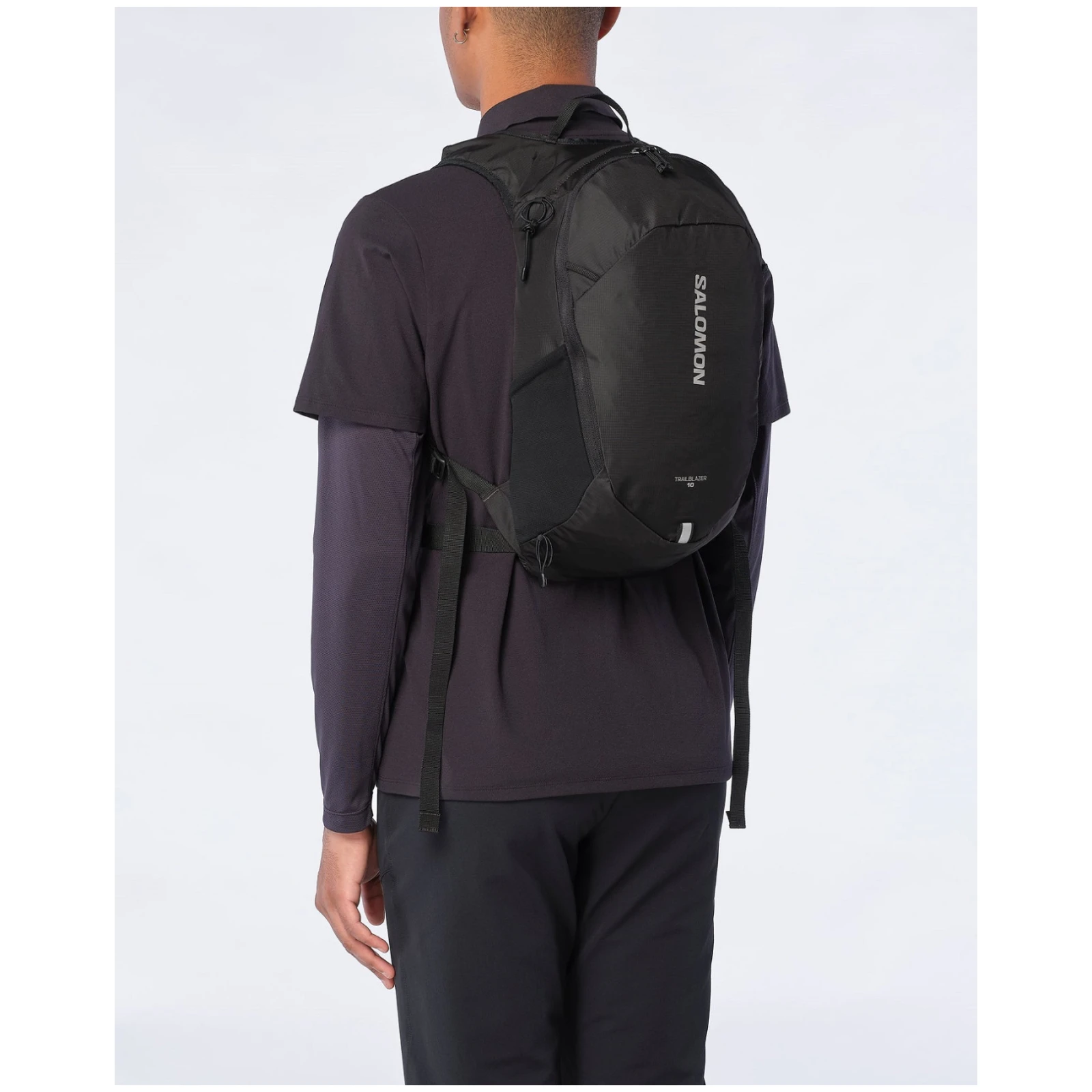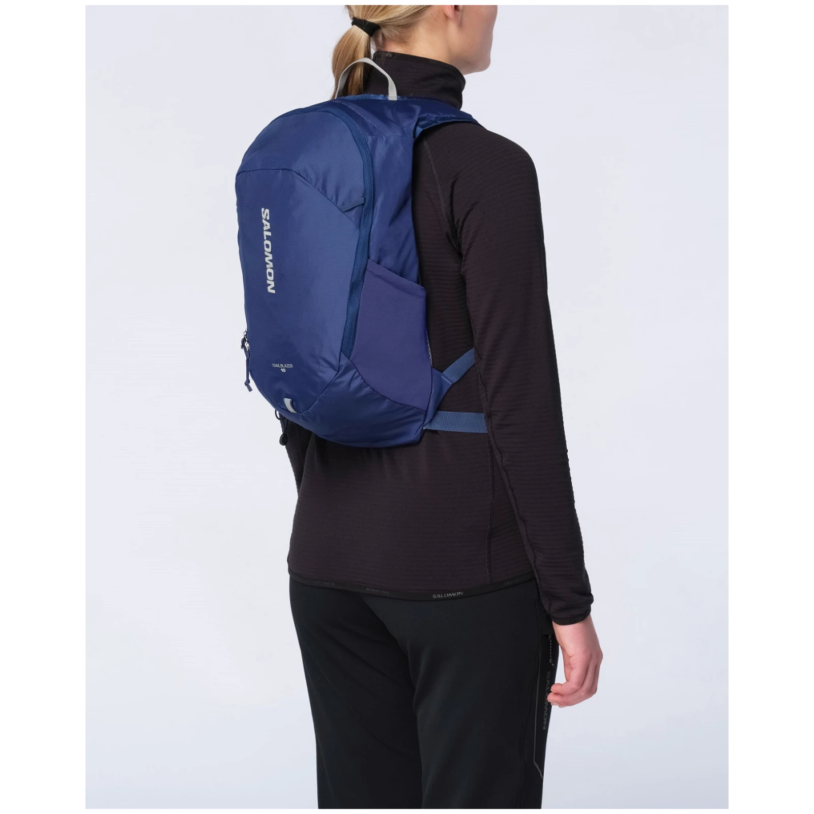 Minimalistički ruksak Salomon Trailblazer 10 idealan je za nekoliko sitnica koje trebate za kratko planinarenje, šetnju gradom ili kratku vožnju biciklom. Glavni džep je savršeno dostupan zahvaljujući dugom YKK patentnom zatvaraču. U gornjem dijelu ruksaka nalazi se praktičan džep za sitnice, tako da sunčane naočale ili ključeve možete imati pri ruci. Na ruksak također pričvrstite štapove za treking i unutra stavite mjeh za vodu kako biste poboljšali režim pijenja tijekom svojih aktivnosti. Crijevo mjeha za vodu je provučeno kroz naramenice.