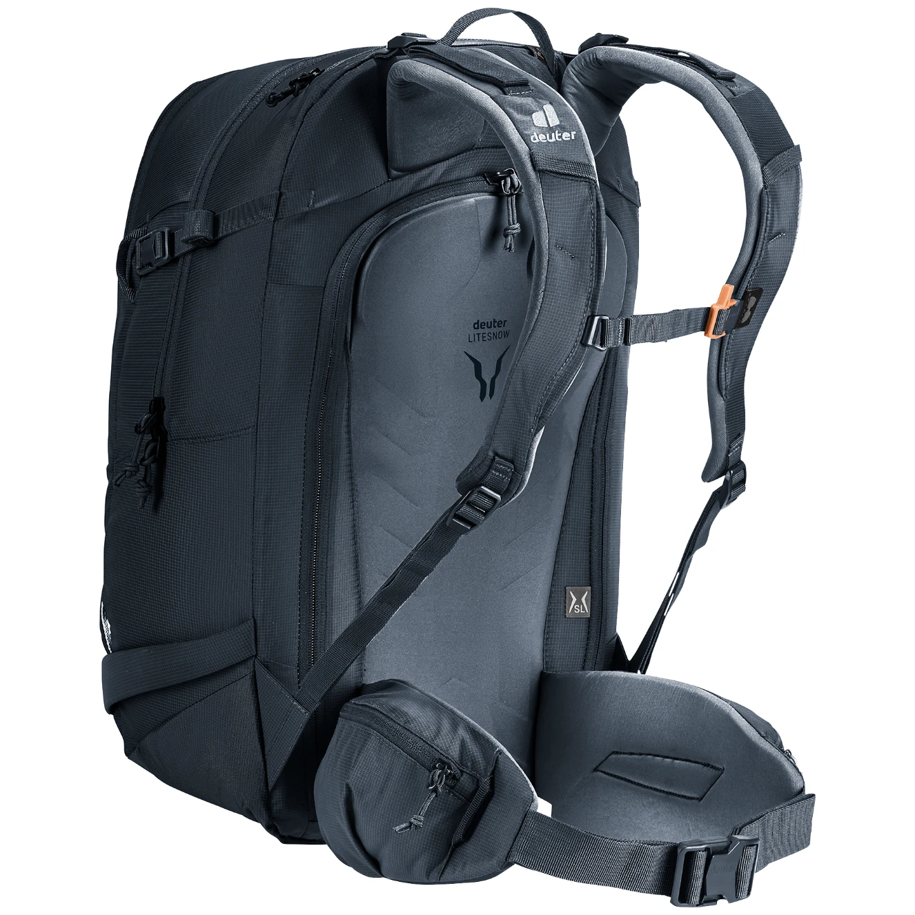 Leđni sustav LiteSnow dizajniran je kako bi se smanjilo nakupljanje snijega, a istovremeno jamči udoban kontakt s tijelom i optimalnu raspodjelu opterećenja.Ruksak omogućuje pričvršćivanje skija dijagonalno ili u A-okviru, kao i snowboarda ili krplji. Odvojeni džep za lavinsku opremu osigurava brzu dostupnost u slučaju potrebe.