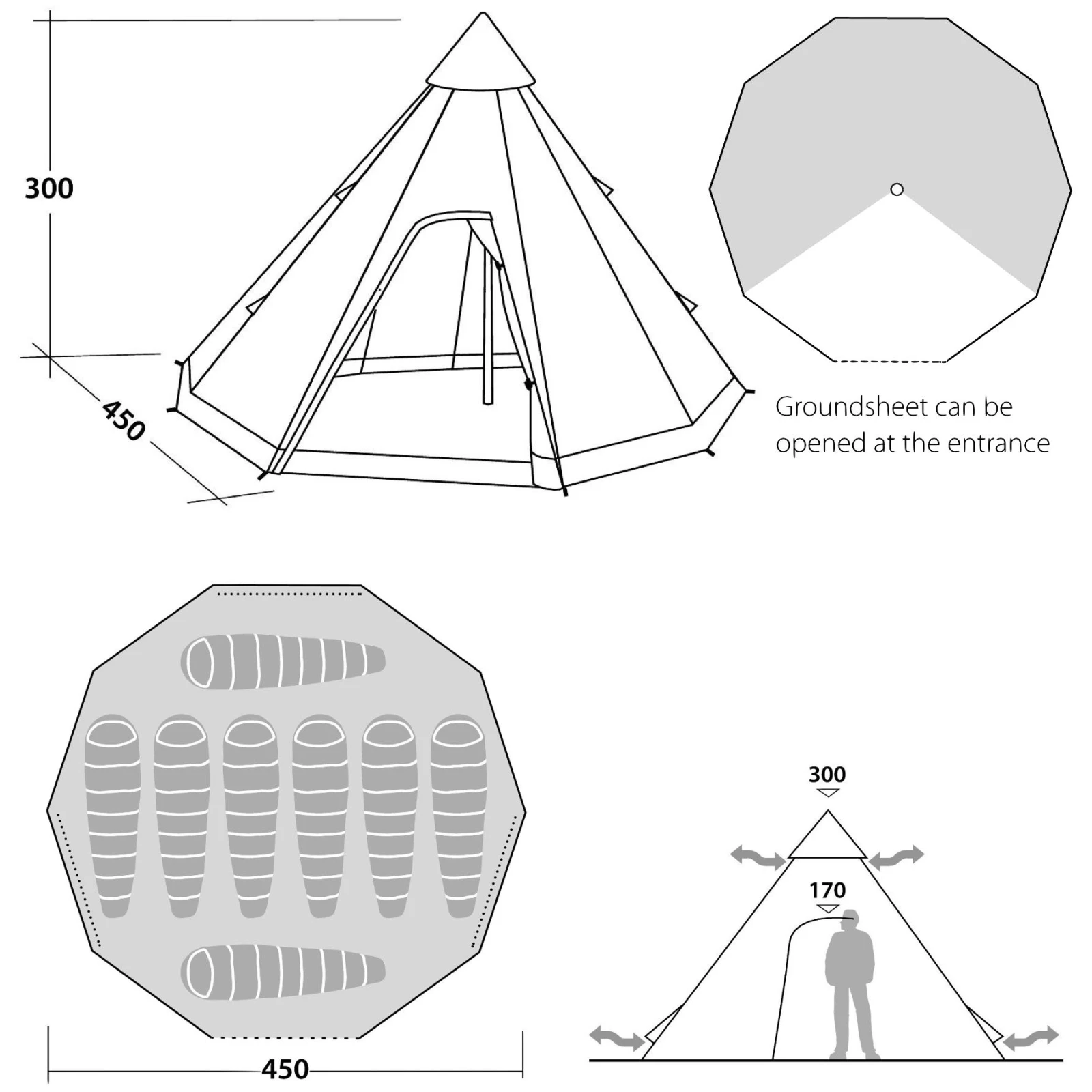Elegantan i jedinstven šator Field Base 800 tvrtke Robens savršen je izbor za veće i manje obitelji i grupe prijatelja. Šator je posebno impresivan svojim tipi oblikom koji će se sigurno svidjeti posebno djeci. U šatoru se nalazi 1 spavaća soba u kojoj udobno spava 8 osoba. Sastavljanje šatora je vrlo jednostavno zahvaljujući teleskopskom središnjem stupu izrađenom od aluminija. Do šatora se dolazi kroz jedan ulaz koji ima patent zatvarač.