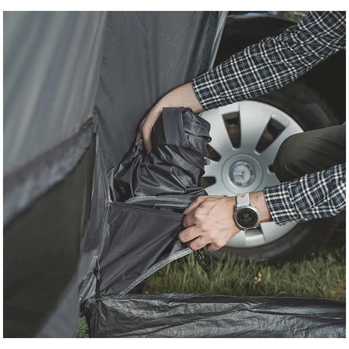 Kompaktna tunelska konstrukcija nudi stabilnost, punu visinu za stajanje i velike ulaze koji stvaraju svijetli i prozračni životni prostor. Prednja vrata se također mogu koristiti kao nadstrešnica za sjedenje zaštićeno od vjetra (vertikalne šipke nisu uključene). Eidfjord je također spreman za opcijsko osvjetljenje Twinflower Tent Light (USB-C, prigušiva LED traka), koje se jednostavno pričvršćuje pomoću integriranih čičak traka.