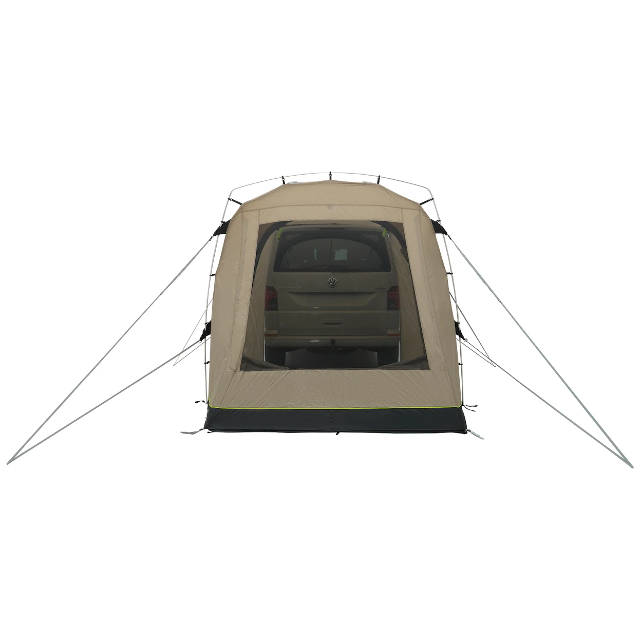 U šator ulazi veliki glavni ulaz bez prepreka s mrežom za komarce, koji se može koristiti i kao nadstrešnica (šipke nisu uključene). Sklopivi paneli sa strane automobila pružaju zaštićen pristup unutra. Veliki zatamnjeni prozor propušta dovoljno svjetla, ali istovremeno pruža zaštitu od UV zračenja i privatnost. Može se zatvoriti zavjesom. Stražnja vrata vozila mogu se otvoriti prema unutra, sustav pričvršćivanja istovremeno ne blokira bočna vrata.