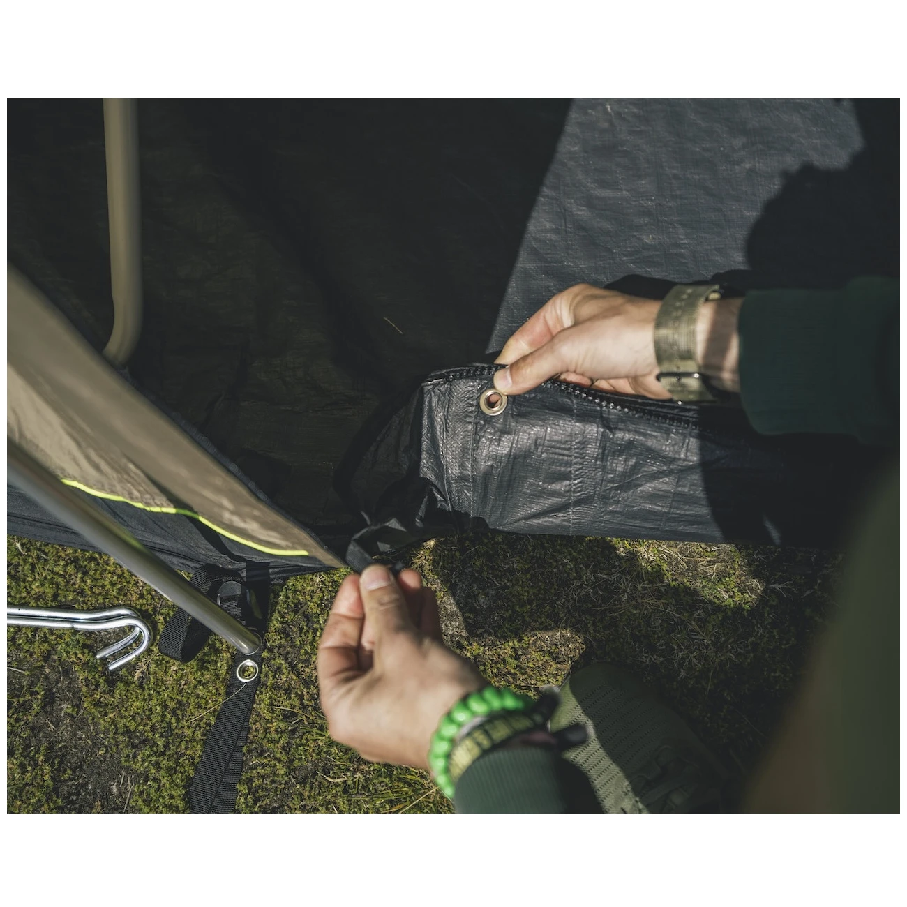 Nadstrešnica nudi niz praktičnih sitnica, uključujući sustav HookTrack za vješanje, koji omogućuje vješanje lakših predmeta (nosivost 1,5 kg) na pripremljenu konstrukciju. radi veće udobnosti, šator se može nadopuniti originalnim tepihom, ili podlogom, koja će zaštititi pod od prljavštine i oštećenja s donje strane.