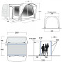 Široki panoramski ulaz s mrežom protiv komaraca omogućuje vam nesmetan ulazak u šator, a možete ga i otvoriti kako želite zahvaljujući četiri patentna zatvarača. Ulaz je prekriven nadstrešnicomkoja sprječava otjecanje vode u šator. Svijetli krov zajedno sa širokim zatamnjenim prozorima dovoljno osvjetljava unutarnji prostor, ali istovremeno štiti od izravne sunčeve svjetlosti i UV zračenja. Ako trebate više privatnosti, jednostavno pričvrstite zavjesu na željenu visinu.