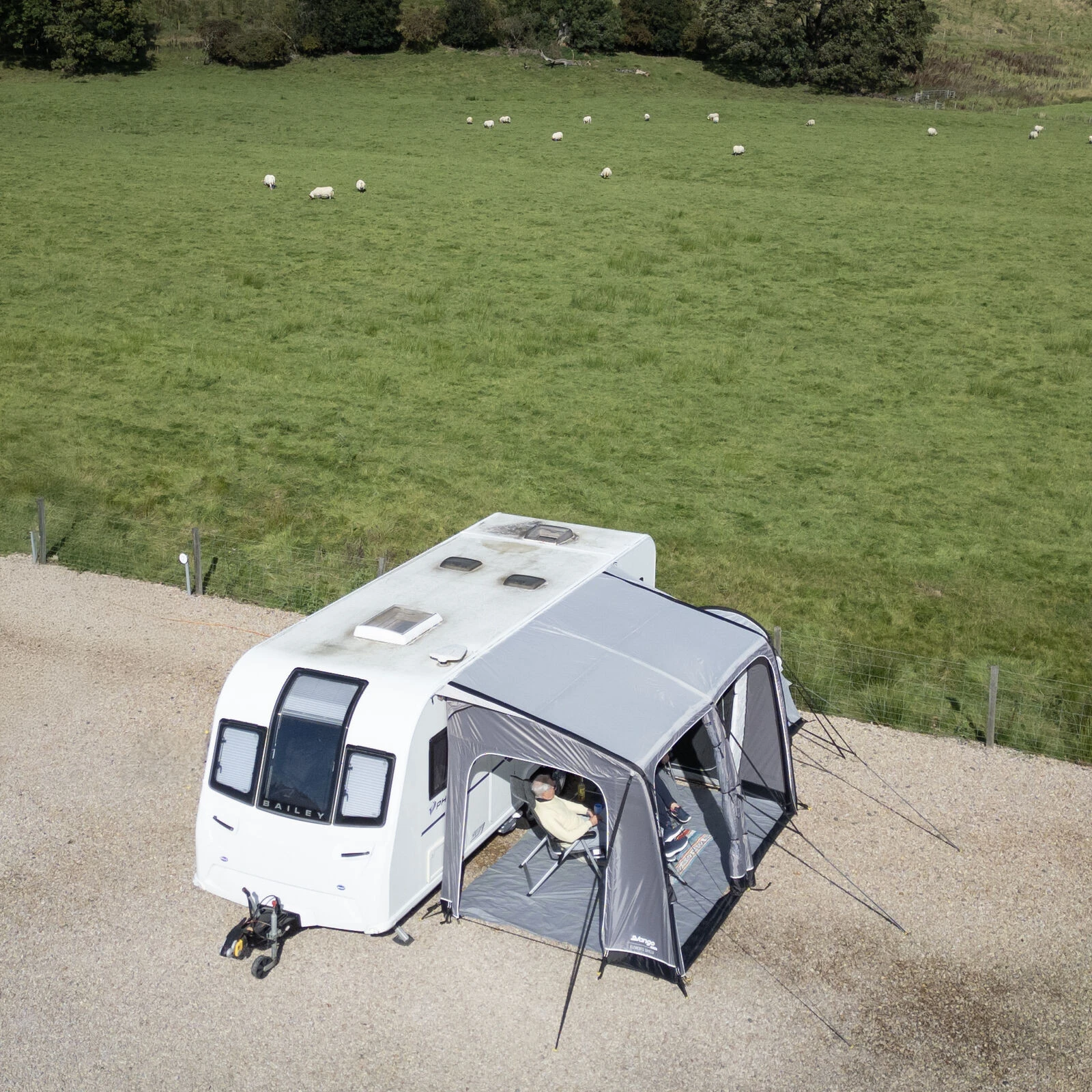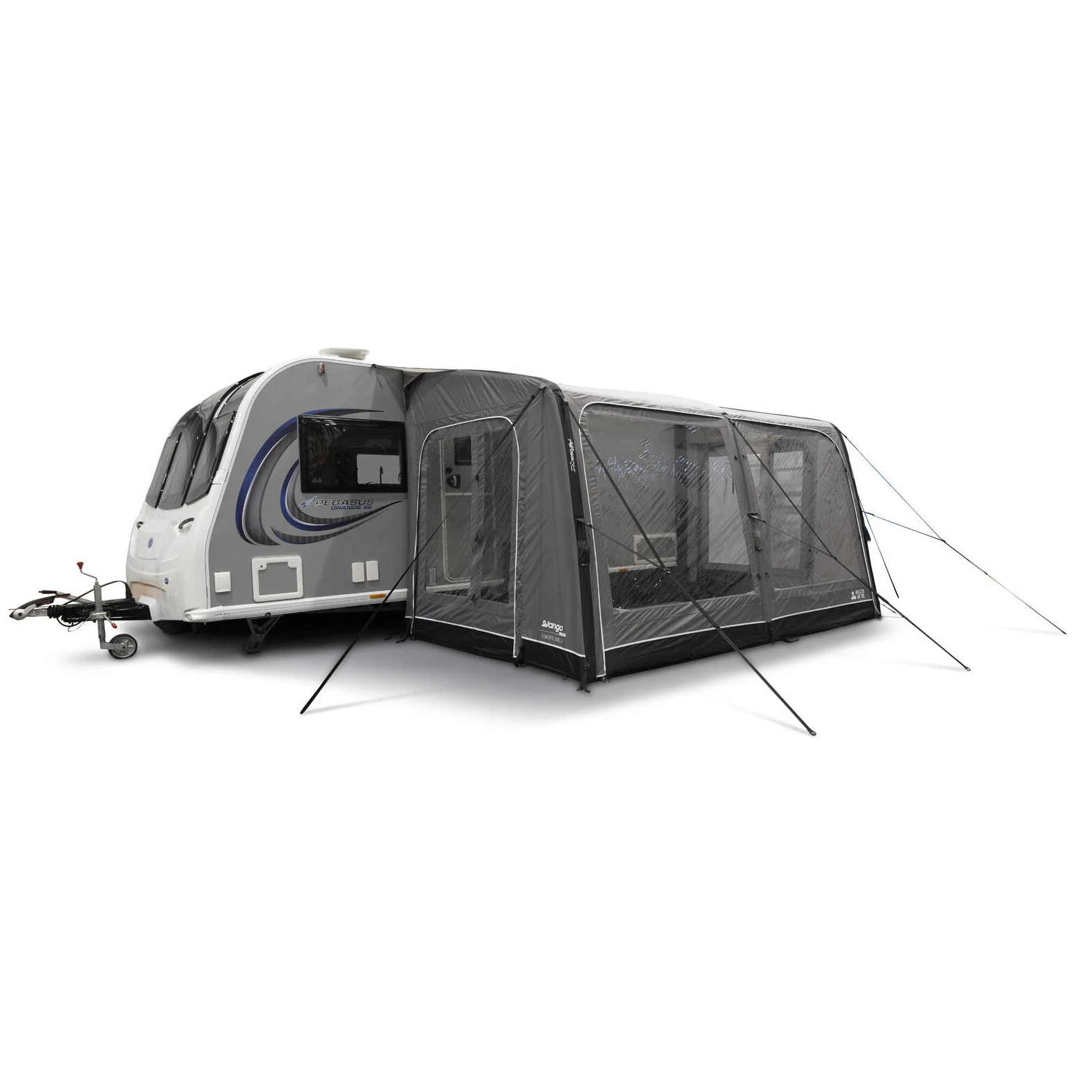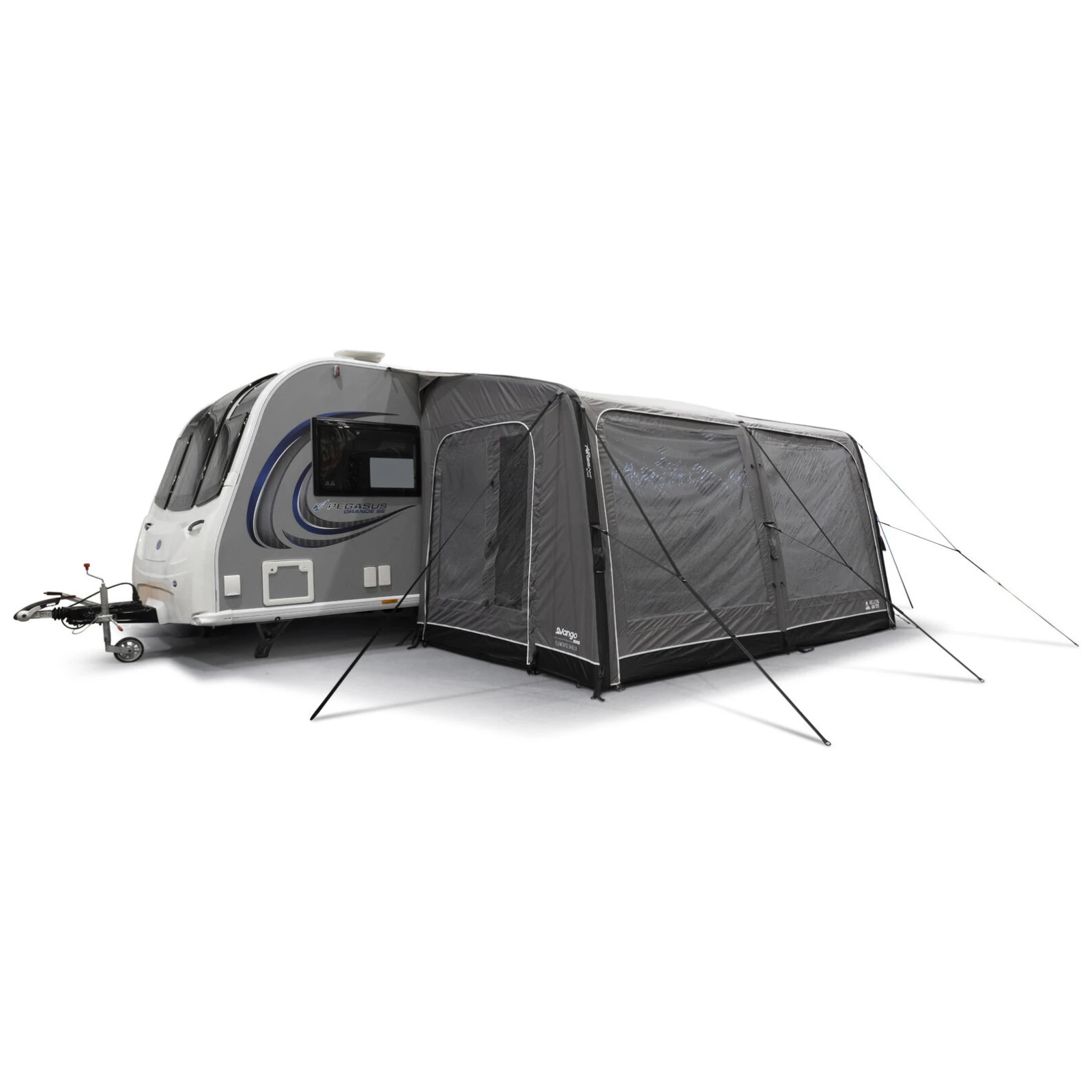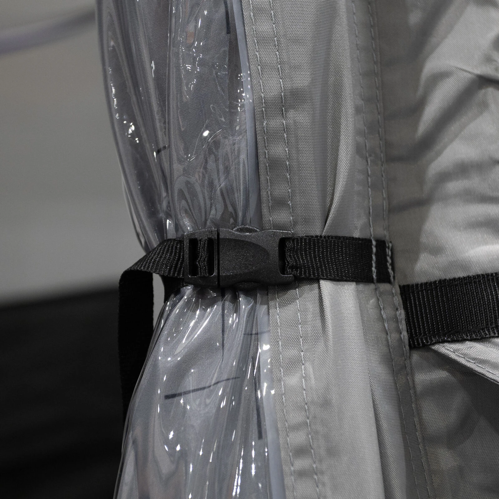 Veliki panoramski prozori Diamond Clear osiguravaju izvrstan pogled na okolinu i dovoljno dnevnog svjetla, dok patentni zatvarači omogućuju jednostavno podešavanje privatnosti. Ergonomski oblikovane i unaprijed zakrivljene potporne šipke povećavaju unutarnji prostor i stabilnost čak i u vjetrovitijim uvjetima. Za maksimalan komfor, paket također uključuje zaštitu od vjetra i pokrove za prostor ispod kotača koji sprječavaju prodor hladnoće.