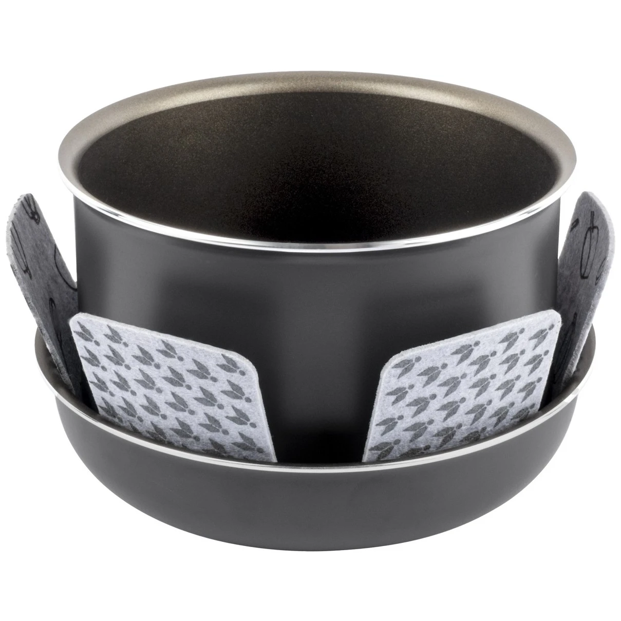 Set posuđa Torralta Ø 18 cm marke Brunner nudi optimalan omjer površine i volumena. Zahvaljujući posebnom dizajnu rubova, sigurno stoji i bez rizika od klizanja. Sve posude i tave izrađene su od recikliranih aluminijskih limenki.