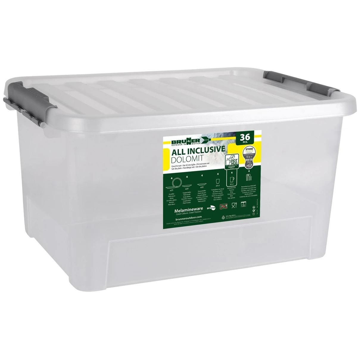 All Inclusive Dolomit rose marke Brunner je vrlo izdržljiv i elegantan set posuđa od 36 komada, koji sadrži sve potrebno za savršeno iskustvo kampiranja.