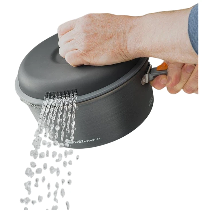 Pinnacle Ceramic Camper od GSI Outdoors je promišljeno dizajniran set posuđa koji se prilagođava potrebama kako dviju osoba u treking timu, tako i četveročlane obitelji na kampiranju. Sadrži sve potrebno za kuhanje i serviranje – dva lonca (2 i 3 litre) s poklopcima za cijeđenje, tavu, šalice s termo navlakama, zdjelice, tanjure i pribor u različitim bojama za lako prepoznavanje pojedinih setova.