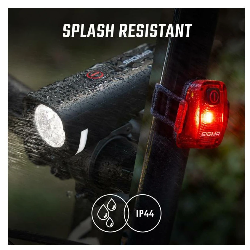 Set svjetala Sigma AURA 50 i HIRO 10 idealan je izbor za bicikliste koji žele pouzdano osvjetljenje i visoku vidljivost u svakoj situaciji. Prednje svjetlo AURA 50 nudi 50 luksa, domet do 60 metara i dodatno automatski senzor svjetline, koji prilagođava intenzitet okolnim uvjetima i štedi bateriju. Stražnje svjetlo HIRO 10 osigurava vidljivost do 500 metara sa širokim kutom osvjetljenja od 240°. Oba svjetla se lako pune putem USB-C, brzo se montiraju bez alata i zahvaljujući vodootpornosti IP44 vas neće iznevjeriti ni u nepovoljnim vremenskim uvjetima.
