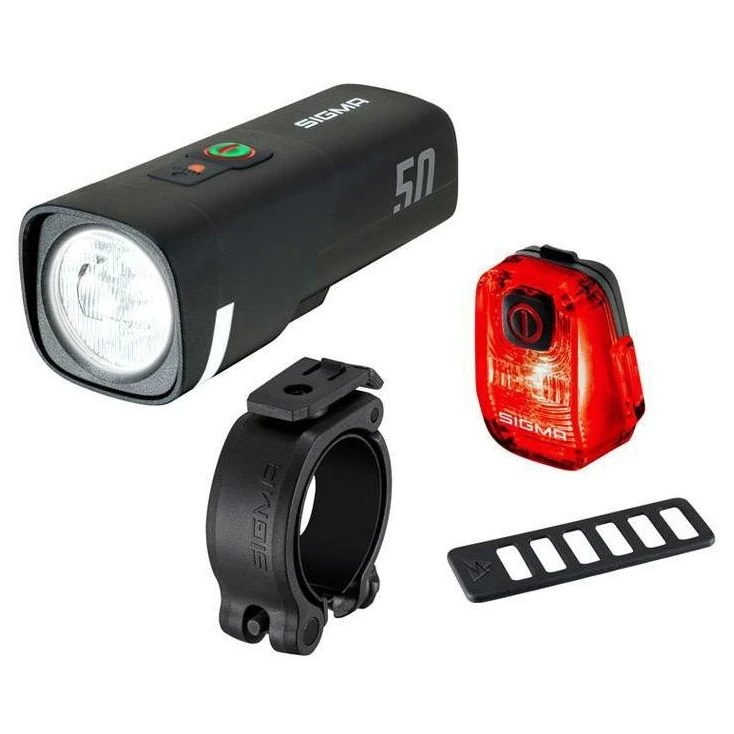 Set svjetala Sigma Aura 50 + Hiro 10: pametno prednje svjetlo sa senzorom svjetline i pouzdano stražnje svjetlo za sigurnu vožnju u svim uvjetima.