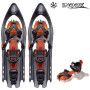 Snježne krplje Inook imaju jedinstveni sustav za zaključavanje pete, zahvaljujući kojem se snježne krplje mogu lako zaključati ili otključati čak i dok stojite, uz pomoć motki, baš kao i kod skijaških veza. Sustav zaključavanja krplja može se koristiti i kao jastučić za petu, baš kao i kod skijaških alpskih vezova. Cijenit ćete i vrlo pametno rješenje za pričvršćivanje cipela, koje se lako može zategnuti pomoću čegrtaljke baš kao i vezovi za snowboard. Na čegrtaljci postoji i poseban sustav koji omogućuje lako otpuštanje čegrtaljke čak i kada nosite rukavice. Snježne krplje također se mogu prilagoditi bilo kojoj veličini cipela zahvaljujući steznoj traci, koja se može centrirati drugom čegrtaljkom. Snježne krplje se isporučuju u pakiranju.