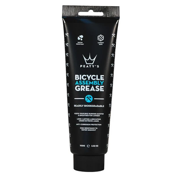 Peaty's Bicycle Assembly Grease je mast za sklopove bicikala koja ima svestranu upotrebu u slušalicama, nosačima i drugim dijelovima. Ovo je posljednja generacija baznih ulja i aditiva koji osiguravaju dugotrajnu učinkovitost. Peaty's Bicycle Assembly Grease je kompatibilna sa svim uljima mineralne ili sintetičke prirode s iznimkom proizvoda na bazi PAG (polialkilen glikol).