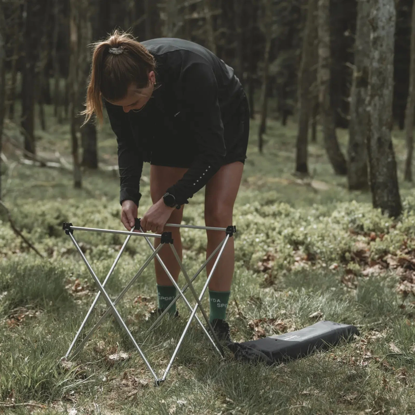 Stolac ima izdržljivi aluminijski okvir i stabilnu aluminijsku ploču, koja je dizajnirana kao sklopiva (roll-top). Sastavljanje je brzo – ploča se pričvršćuje na okvir pomoću plastičnih kopči. Za bolju stabilnost na neravnom terenu zaslužne su ravne plastične nogice.